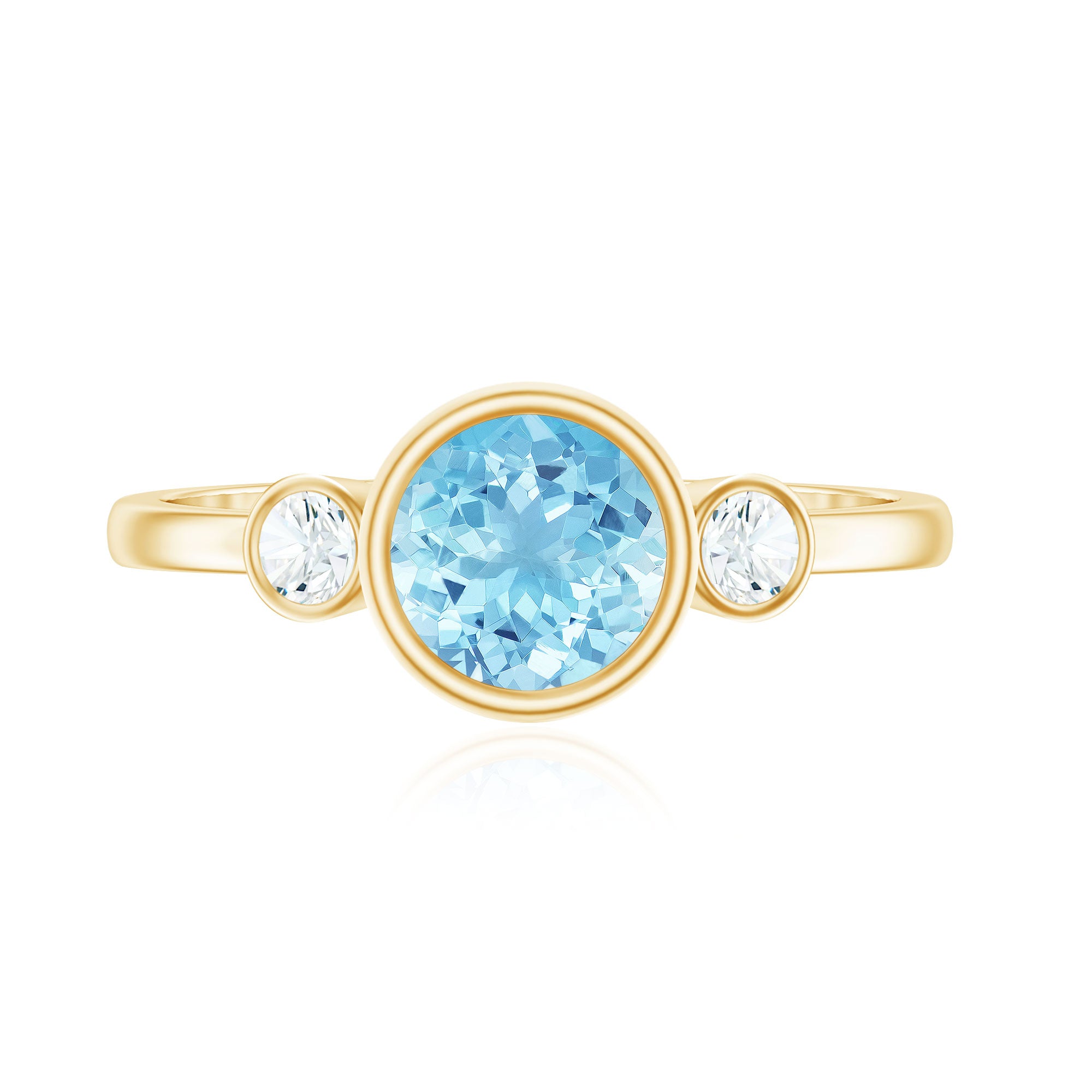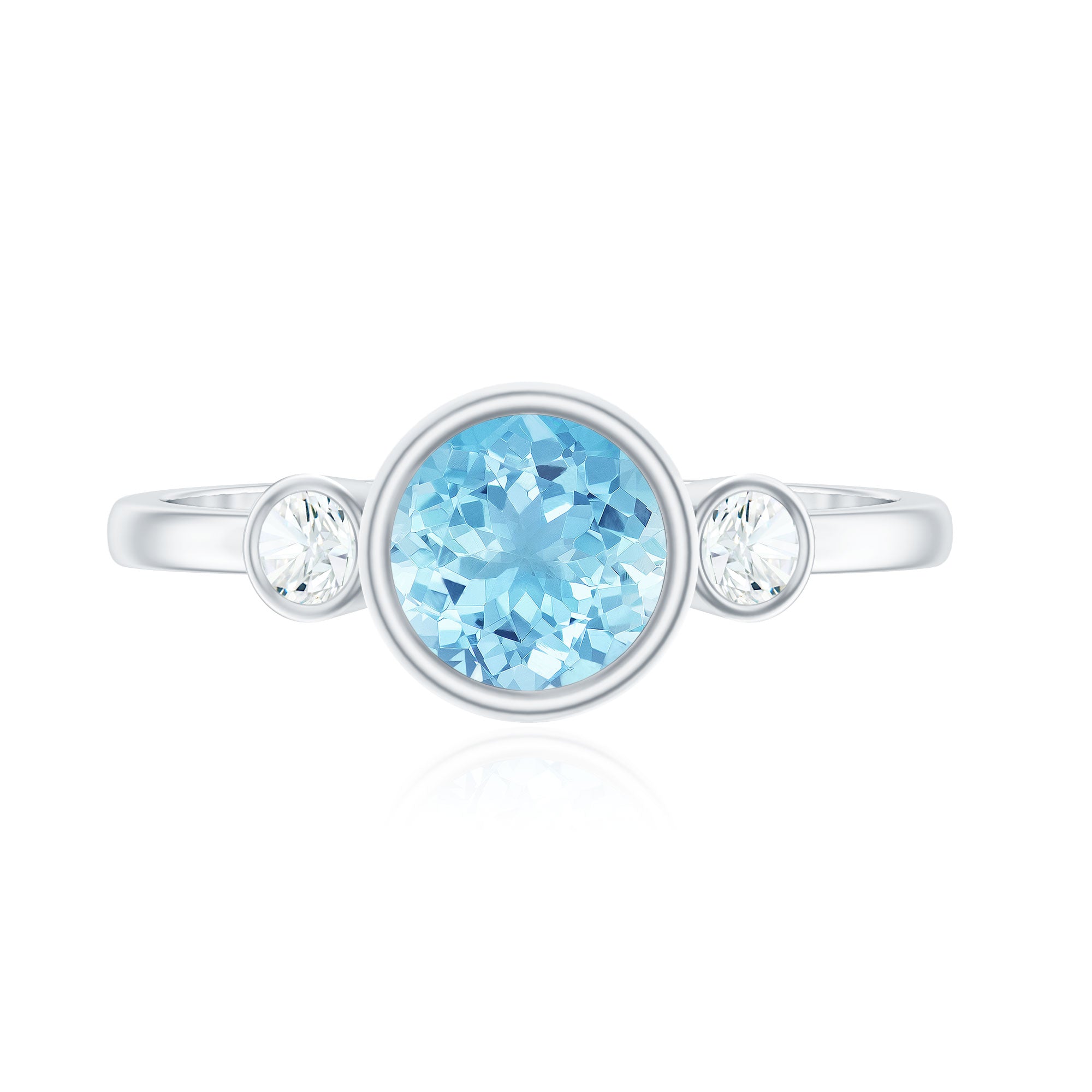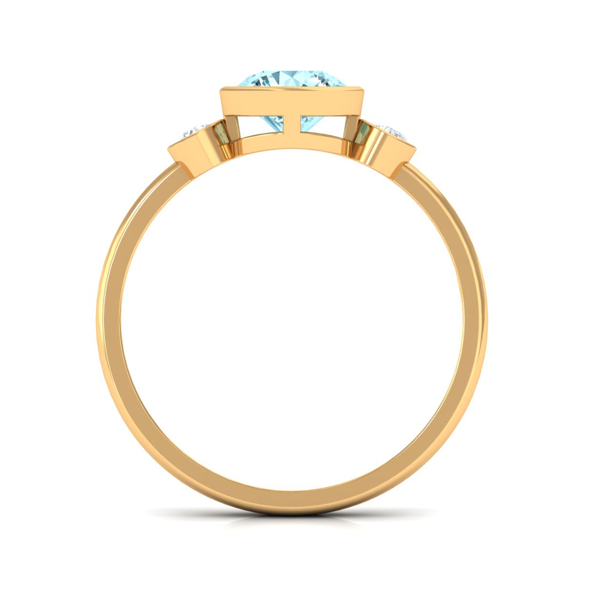 Bezel Set Aquamarine Solitaire Engagement Ring with Diamond