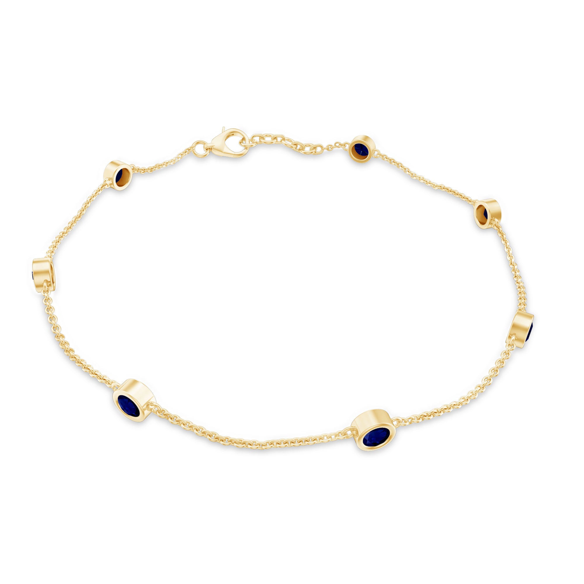 Bezel Set Blue Sapphire Seven Stone Station Chain Bracelet