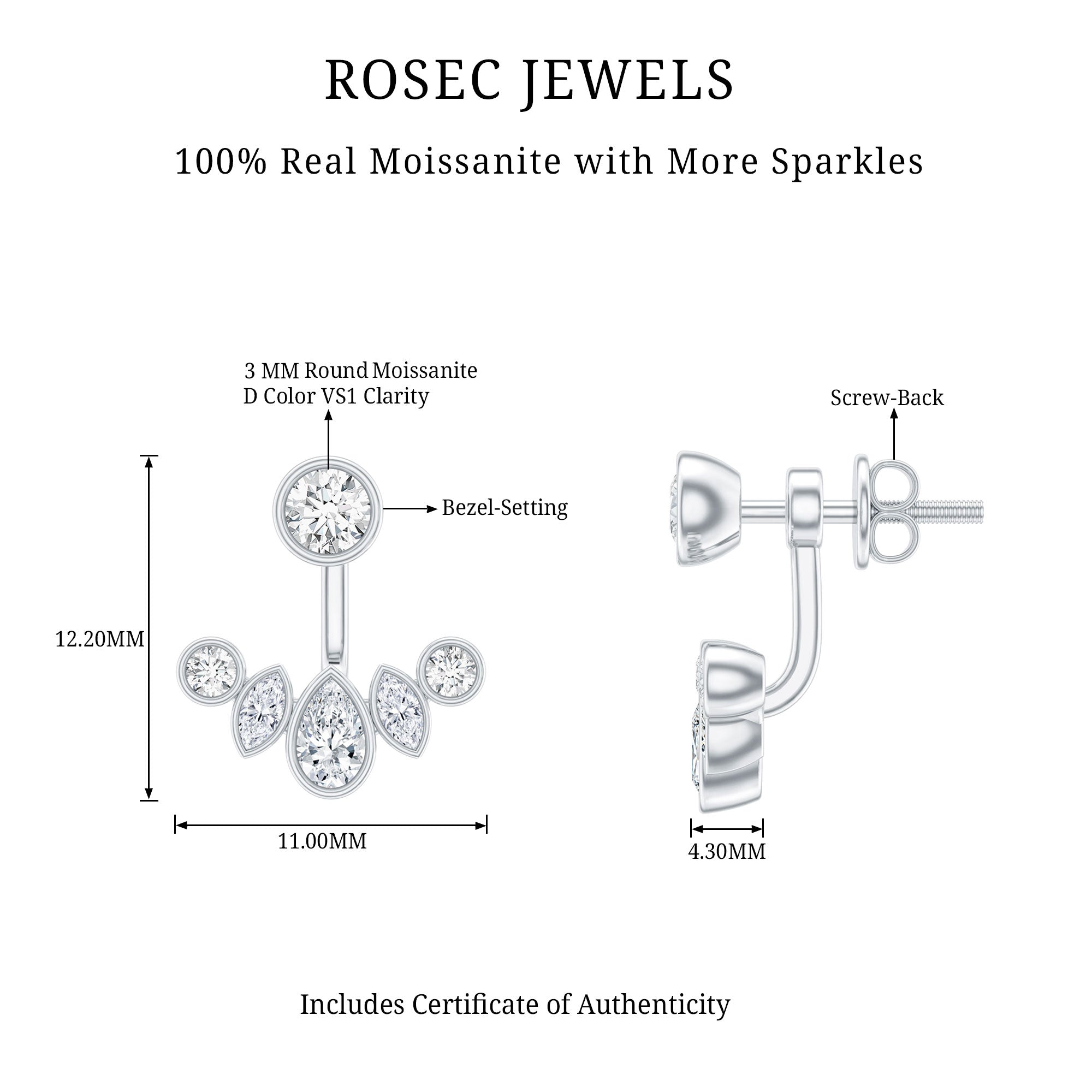 Bezel Set Certified Moissanite Ear Jacket Earrings for Women