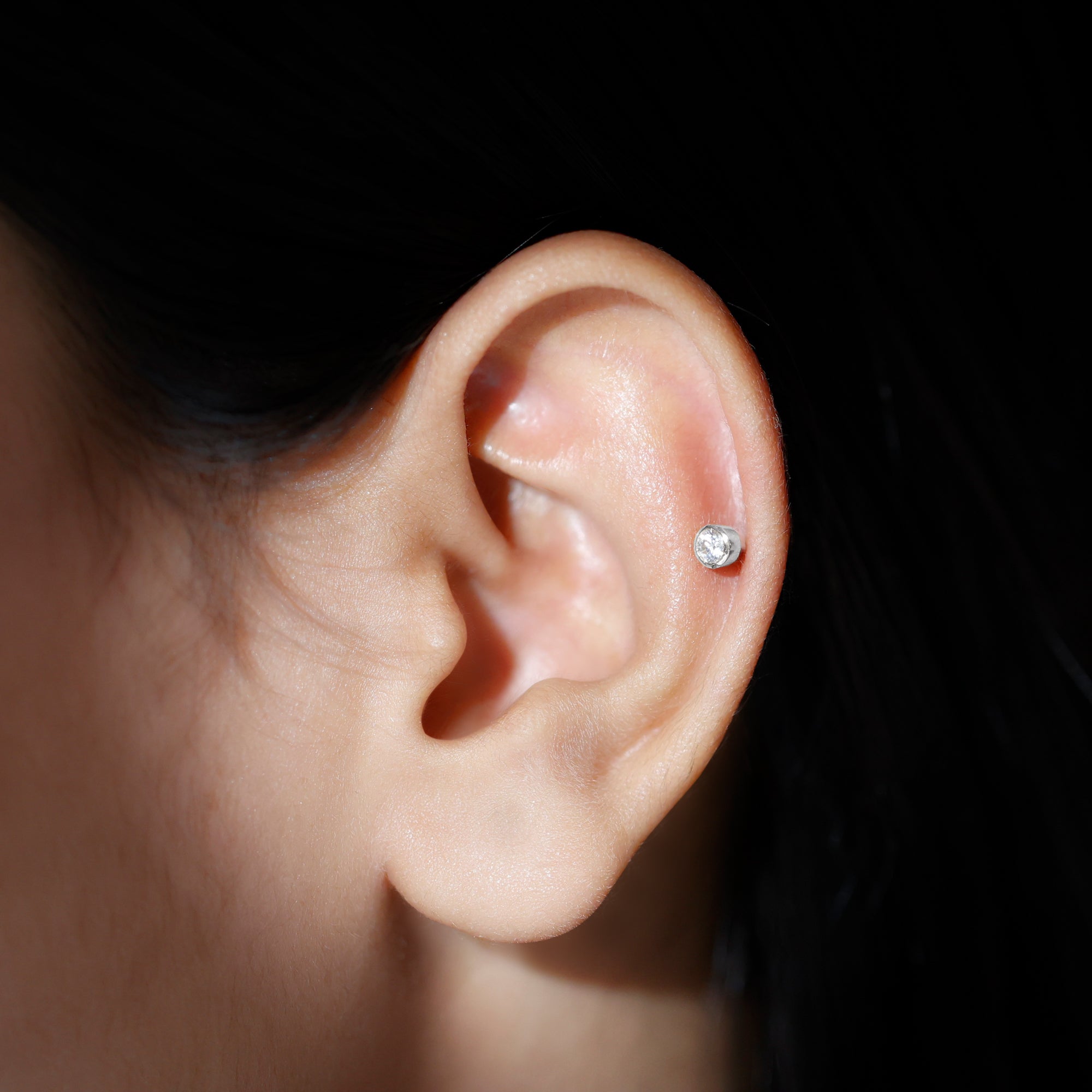 Bezel Set Diamond Cartilage Earring with Flat Back