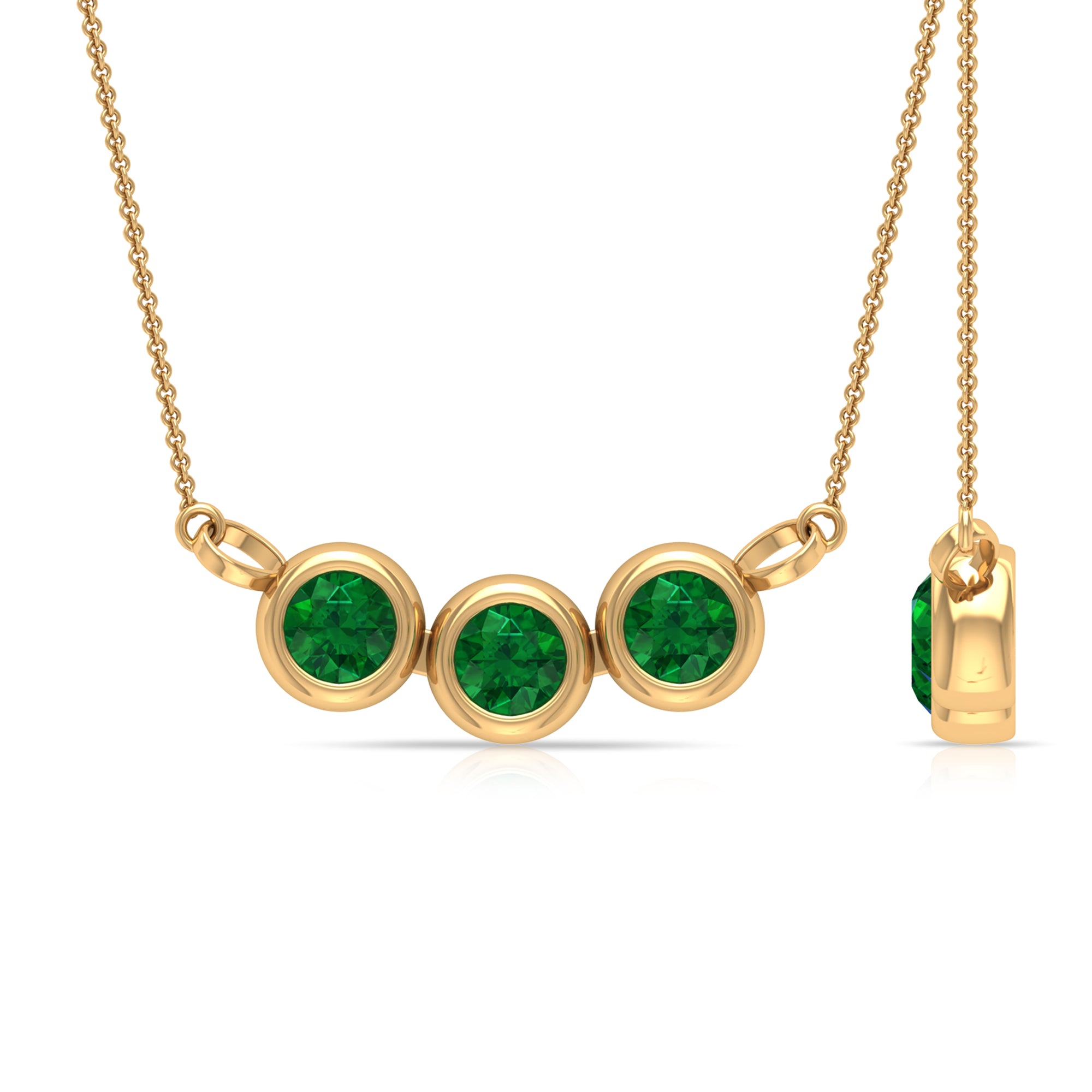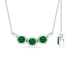 This elegant and classic Emerald Necklace is waiting for you. This Emerald Three Stone Necklace is featuring a trio of Round Shape Emerald in Bezel Setting. A perfect addition to any jewelry collection, this Green Emerald Necklace will make a beautiful and thoughtful surprise for your loved ones.