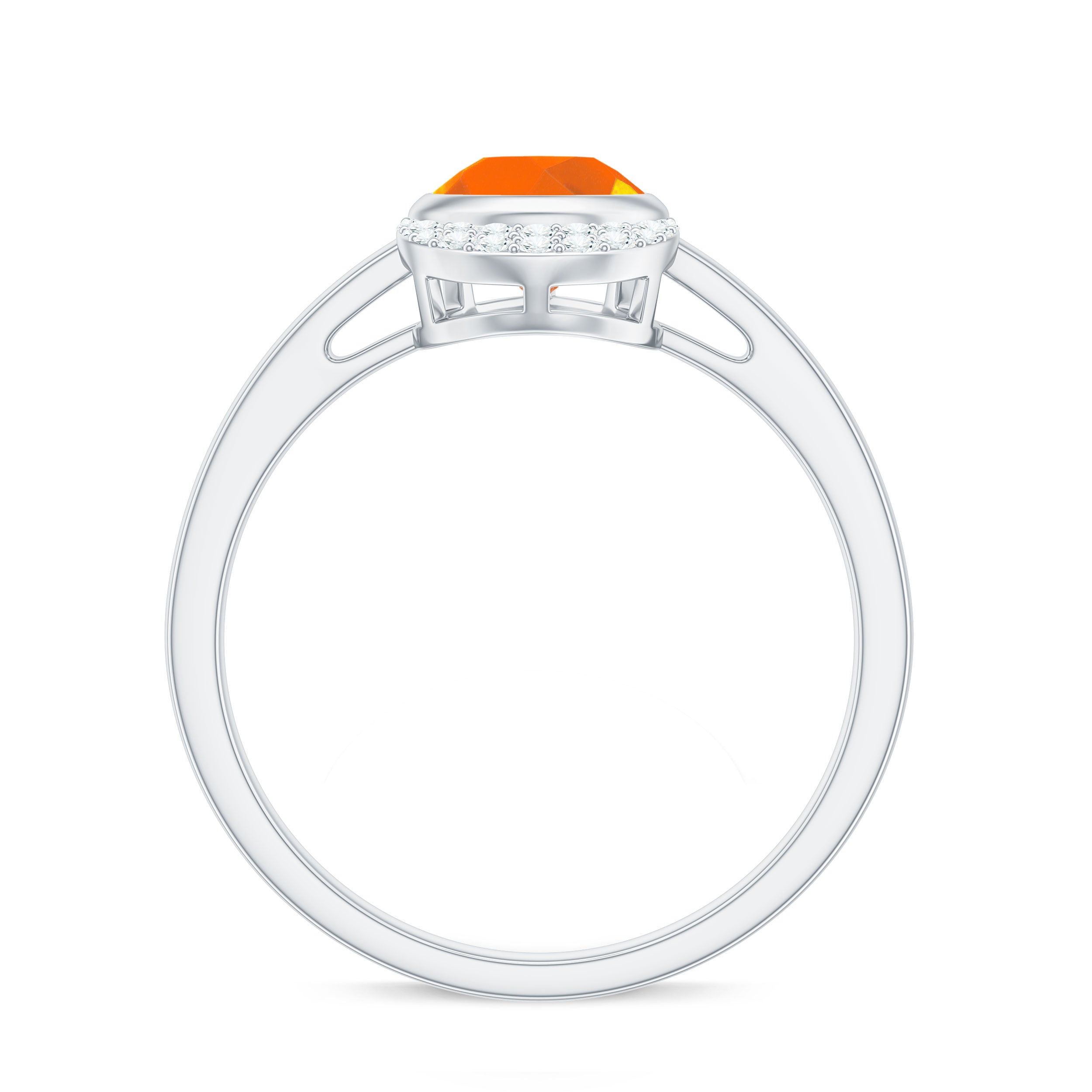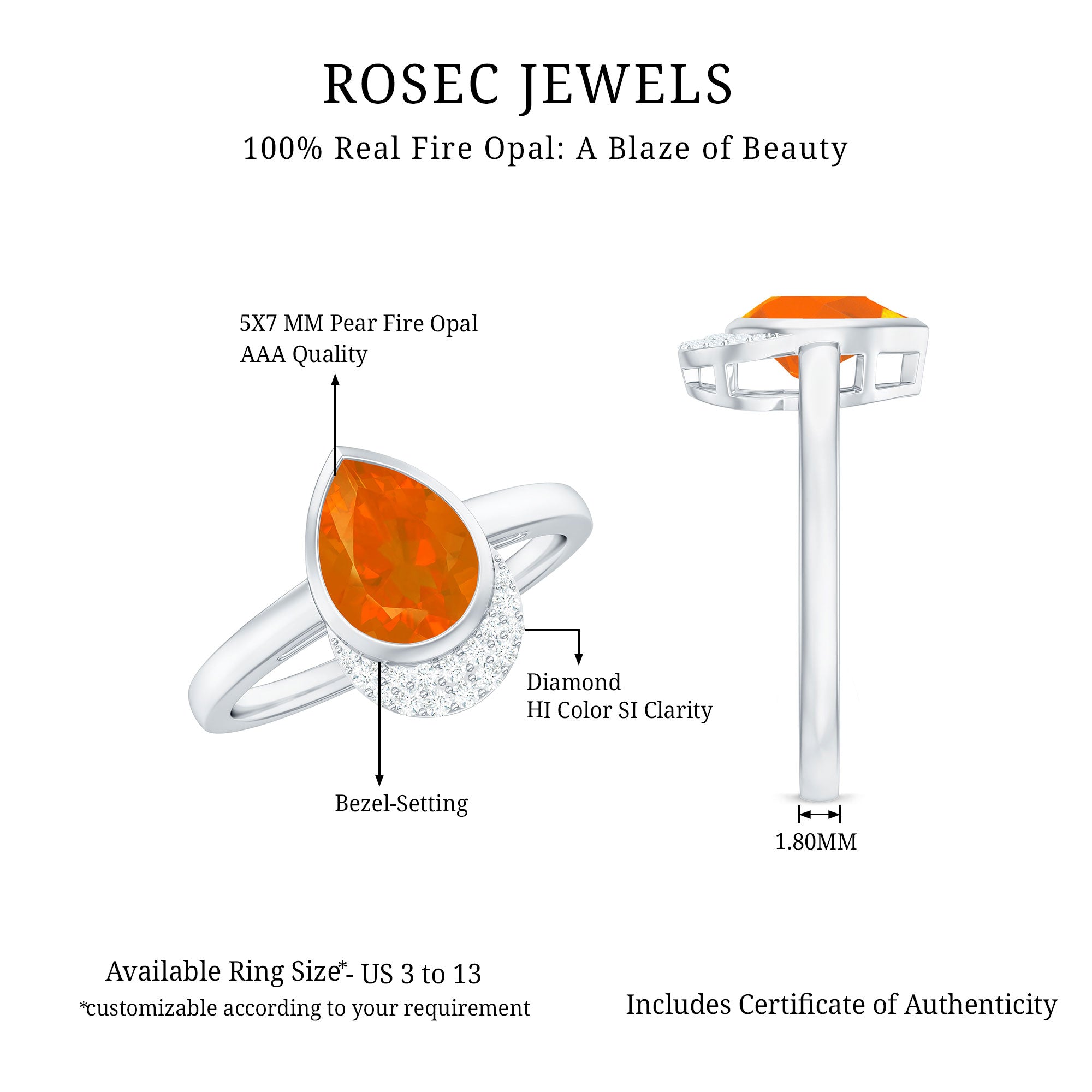 Bezel Set Fire Opal Teardrop Cocktail Engagement Ring with Diamond Accent
