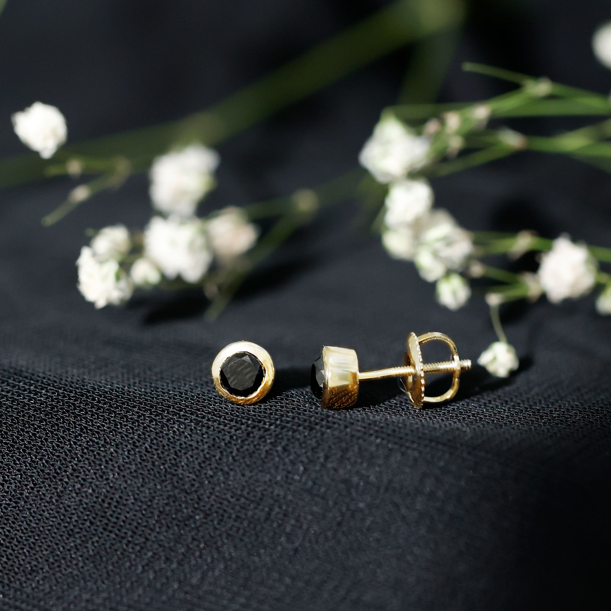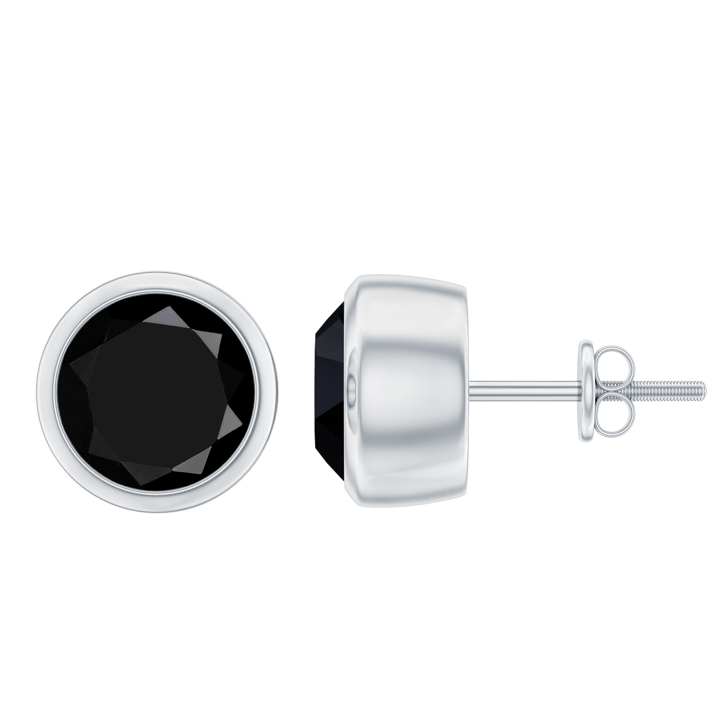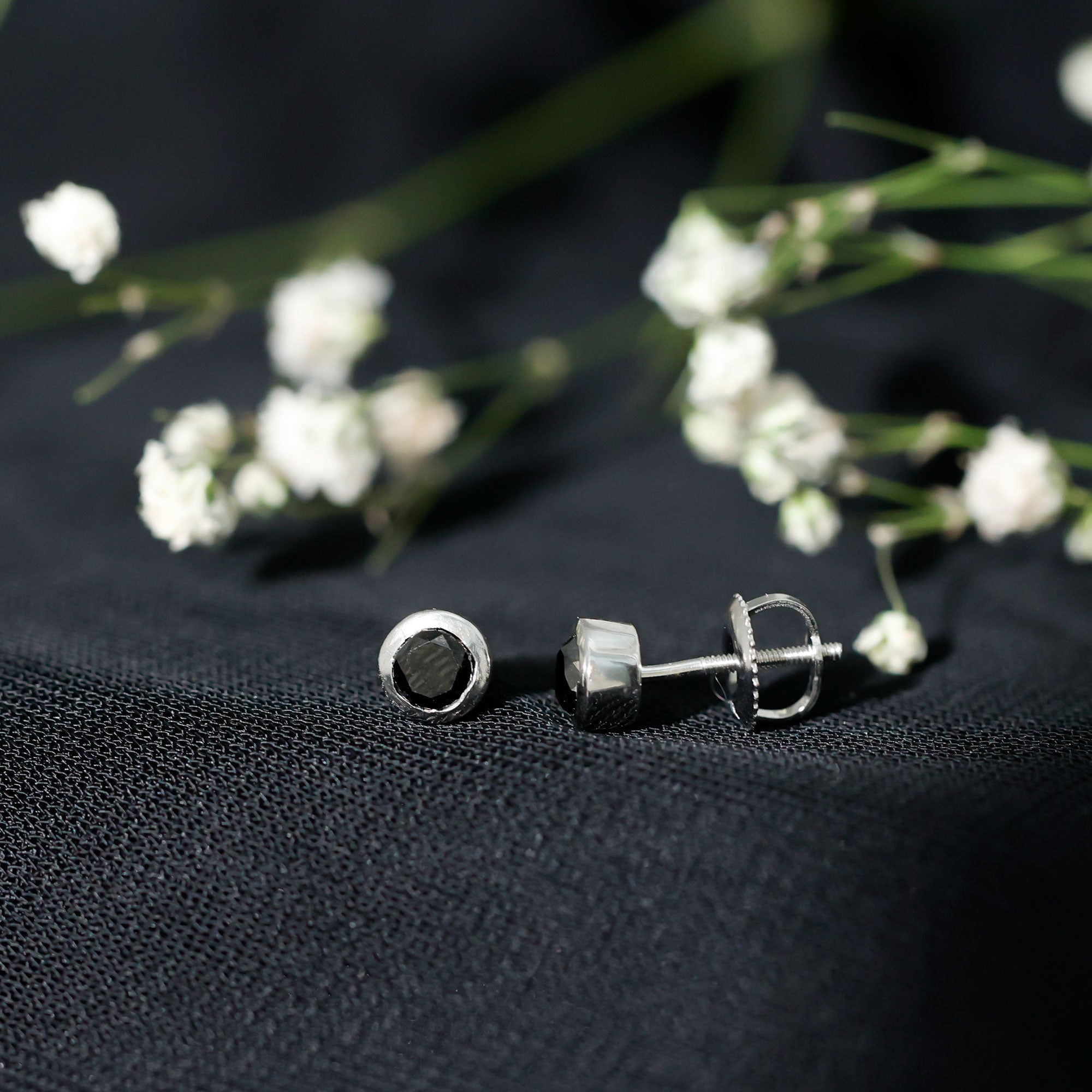 Bezel Set Genuine Black Diamond Stud Earrings With Certificate