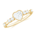 When love is in the air, seal the deal with a Solitaire Diamond that speaks straight to the heart. Our Half Carat Diamond Ring features a 5 MM heart shape lab grown diamond set in a bezel setting and framed with a delicate beaded detailing, adding a vintage-inspired charm, while ensuring its brilliance remains the star of the show. The band is further accented with round cut diamonds set in a prong setting, making this Heart Shaped Ring an ideal piece for her special day. This Diamond Engagement Ring comes with a certificate of authenticity and is presented in a luxurious premium package box, so you can store this when not in use. The Diamond Heart Ring is available in various metal color options to match your style and comes in different finger sizes to ensure the perfect fit.