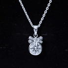 A timeless treasure for the woman who wants to shine brightly on special occasions, this Diamond Bow Necklace is a perfect blend of elegance and sparkle. It features an 8 MM round shaped diamond in the center set in bezel setting, above this centerpiece a dazzling bow motif is placed, encrusted with dainty diamonds, adding a touch of femininity and charm. The gracefully curved ribbons of the bow enhance its luxurious appeal, while the intricate bail makes sure that this Solitaire Pendant rests on your neckline seamlessly. Designed for versatility, this 2 CT Diamond Necklace is an ideal choice for bridal wear, remarkable celebrations, or even as a refined statement piece for elegant evenings. Plus, it is curated with lab grown diamonds so it offers not only brilliance but also an ethical choice for the modern woman.