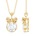 Bezel Set Lab Grown Diamond Solitaire Necklace With Cute Bow