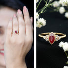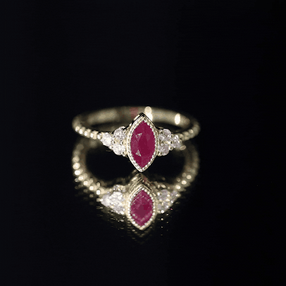 Discover timeless elegance with this Vintage Inspired Ruby Promise Ring for Her. Truly a stunning embodiment of sophistication and love this Marquise Ruby Ring has a striking appearance and makes a stunning one for the one close to your heart. At its heart, a striking 4X8 MM Marquise Cut Ruby in Bezel Setting captures the eye with its deep, radiant red hue symbolizing passion and devotion and is sure to take center stage. Enhancing the Ruby and Diamond Rings brilliance and creating a dazzling effect. The contrast between the Ruby’s intense color and the Diamonds clarity adds a touch of luxury and refinement ensuring that it will be cherished for generations. Perfect for marking a special promise or celebrating a milestone, this ring is an ideal choice for those seeking a blend of classic beauty and modern elegance.