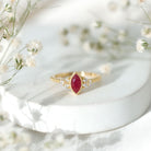 Bezel Set Marquise Ruby Solitaire Promise Ring with Diamond Trio