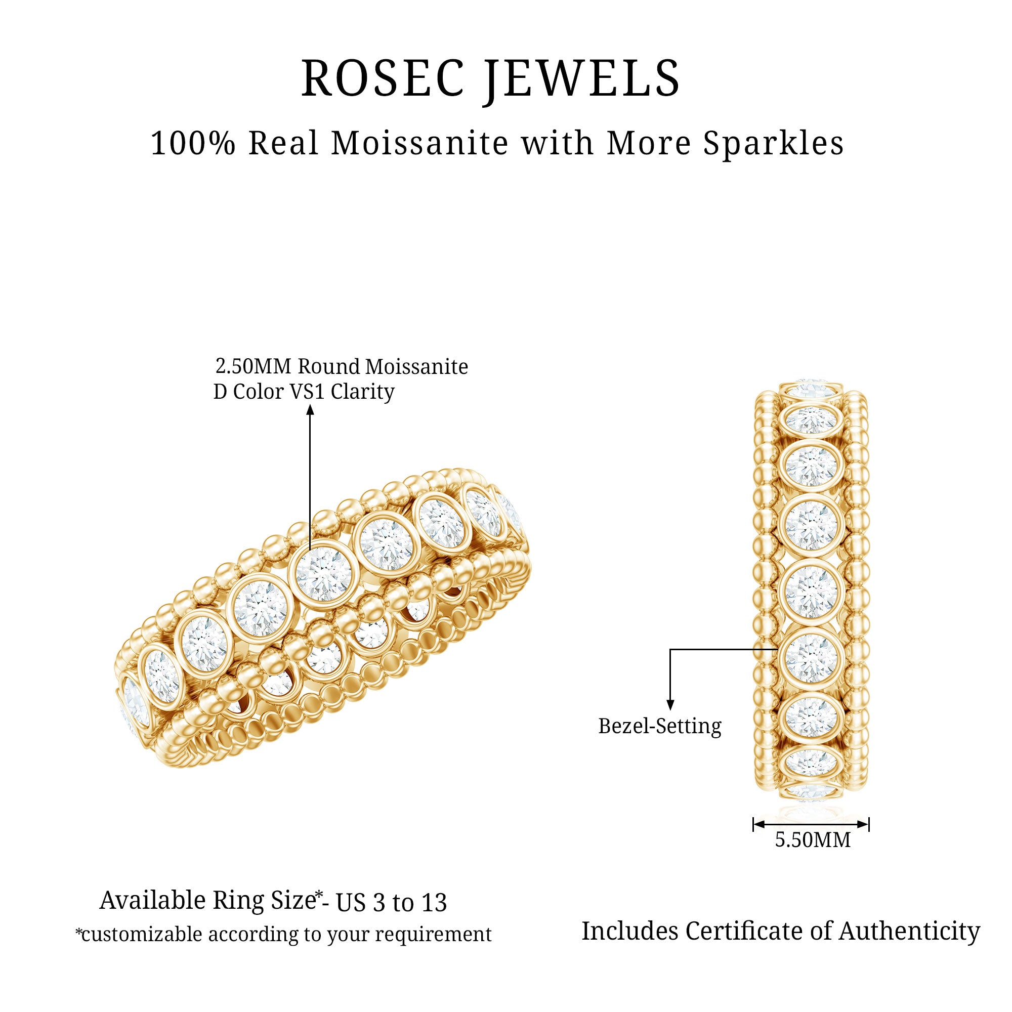 Bezel Set Moissanite Full Eternity Wedding Band with Beaded Detail