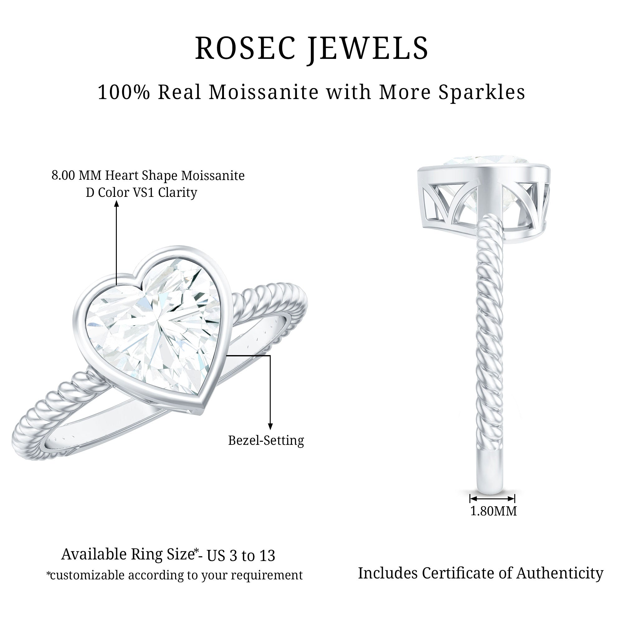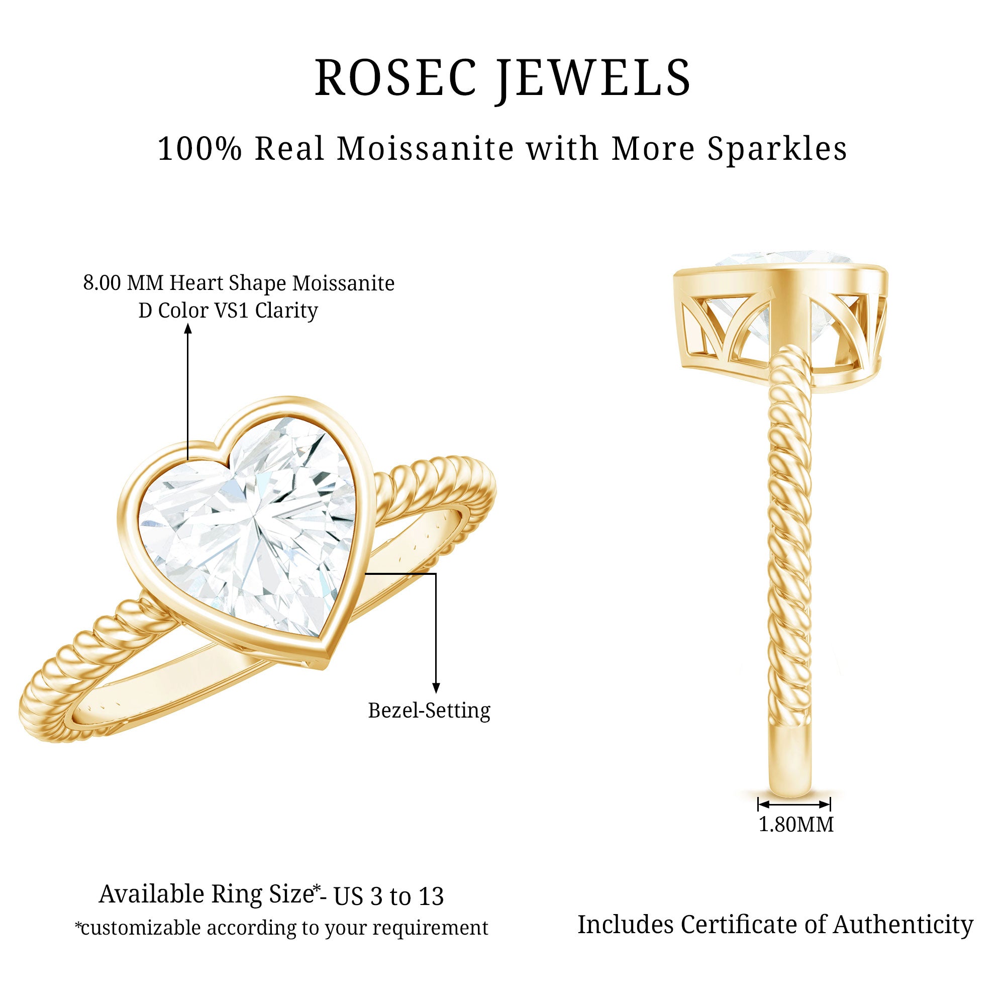 Bezel Set Moissanite Heart Engagement Ring with Twisted Rope Band