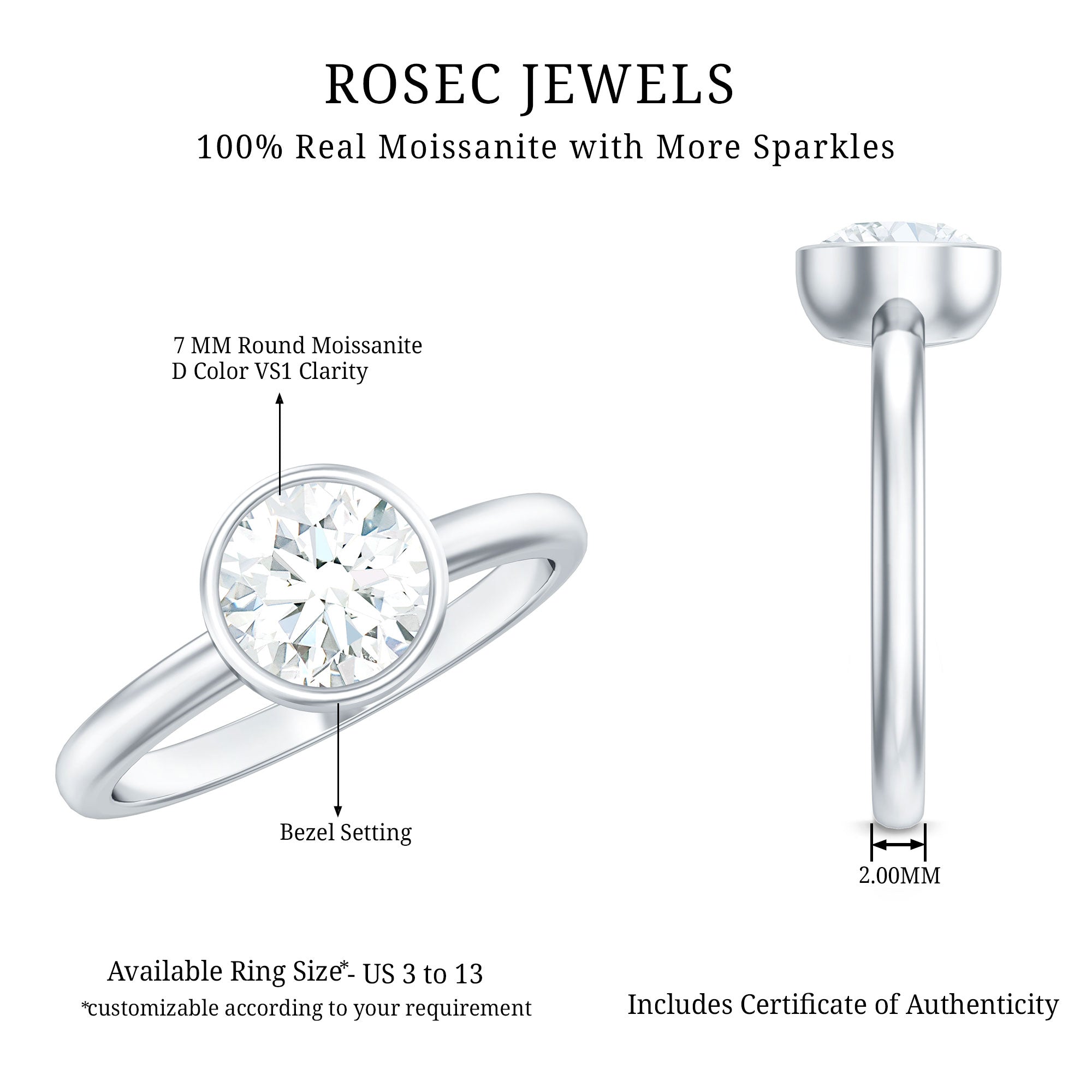 Symbolizing eternal love and telling your unique love story, this Moissanite Engagement Ring is the perfect way to start your journey together. Its elegant design catches the light with every move, featuring a D Color VS1 Clarity Moissanite that dazzles with its brilliance and shine. This Solitaire Engagement Ring showcases a 7 MM round cut moissanite in bezel setting. Both classic and modern, this 1 Carat Moissanite Ring represents commitment and honors the lasting connection between you two. With its versatile design, this Round Moissanite Ring is both understated and chic, making it an excellent choice for a solitaire ring, a birthday gift, or everyday wear. We provide a variety of metal options for you to select from. Moreover, this Bezel Set Engagement Ring is available in different sizes according to US standards, ranging from 3 to 13. The timeless design adds a hint of simplicity and classic elegance, making it perfect for any occasion. Its allure makes this Solitaire Moissanite Ring suitable for any event, whether it is an Engagement, Wedding, or Anniversary.