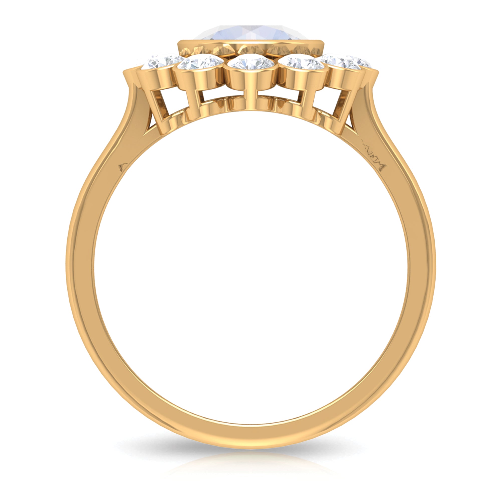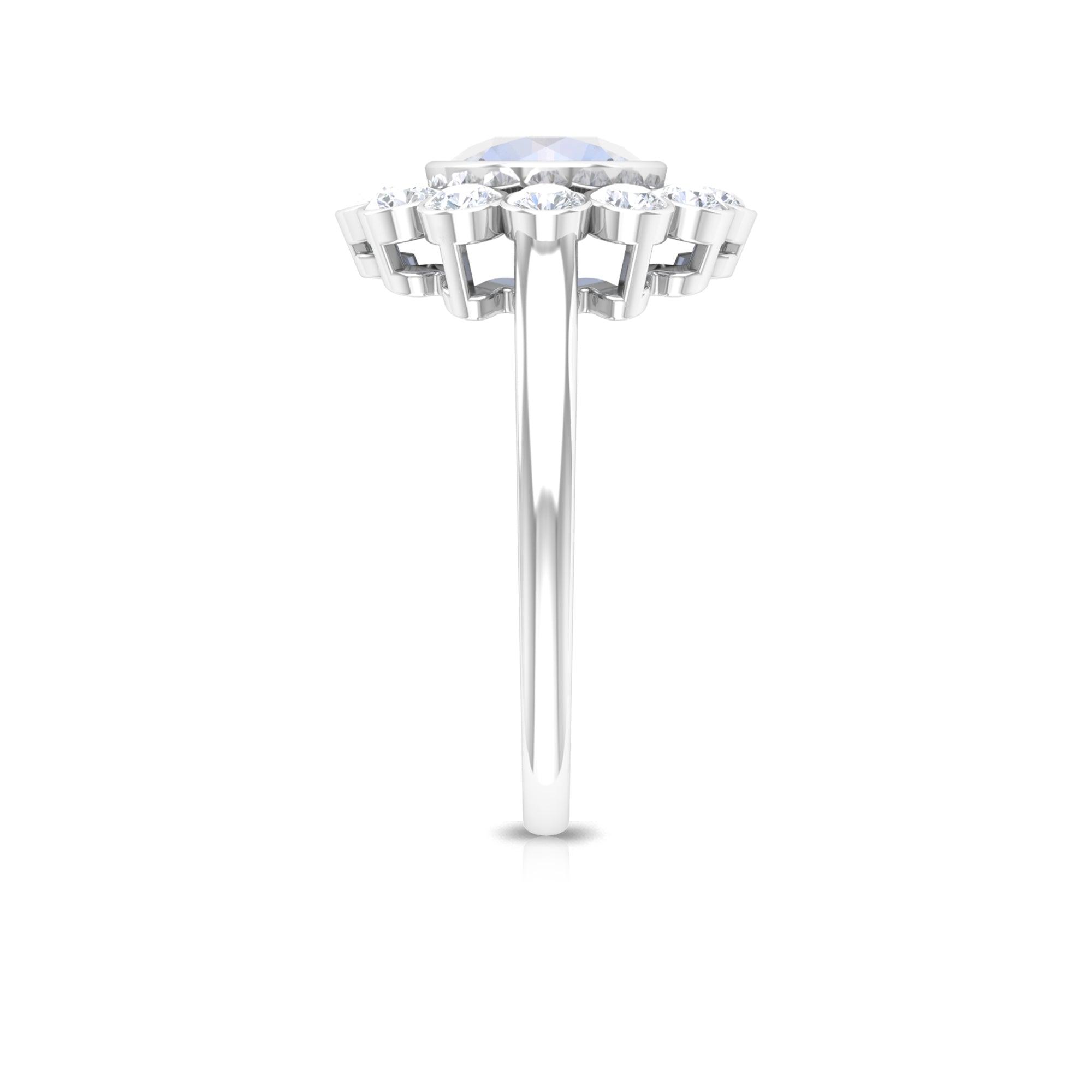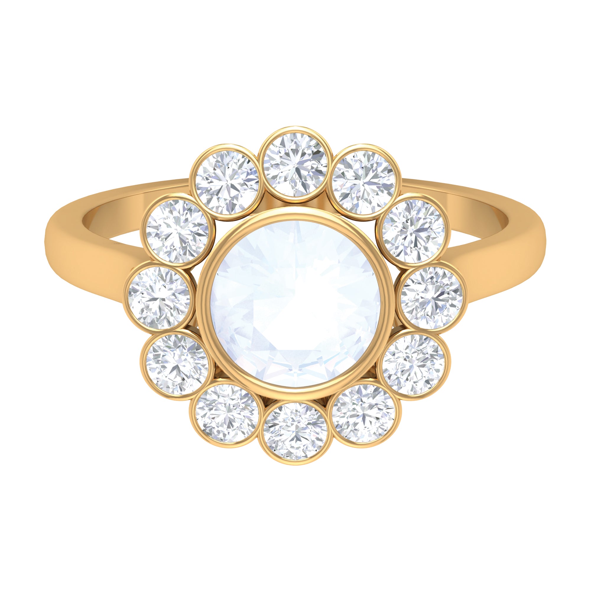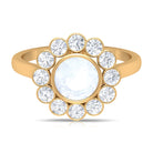Bezel Set Moonstone Statement Engagement Ring with Diamond Halo