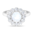 Make a divine statement with this Moonstone Engagement Ring, encircled by a dazzling Diamond halo, a captivating blend of uniqueness and radiance.