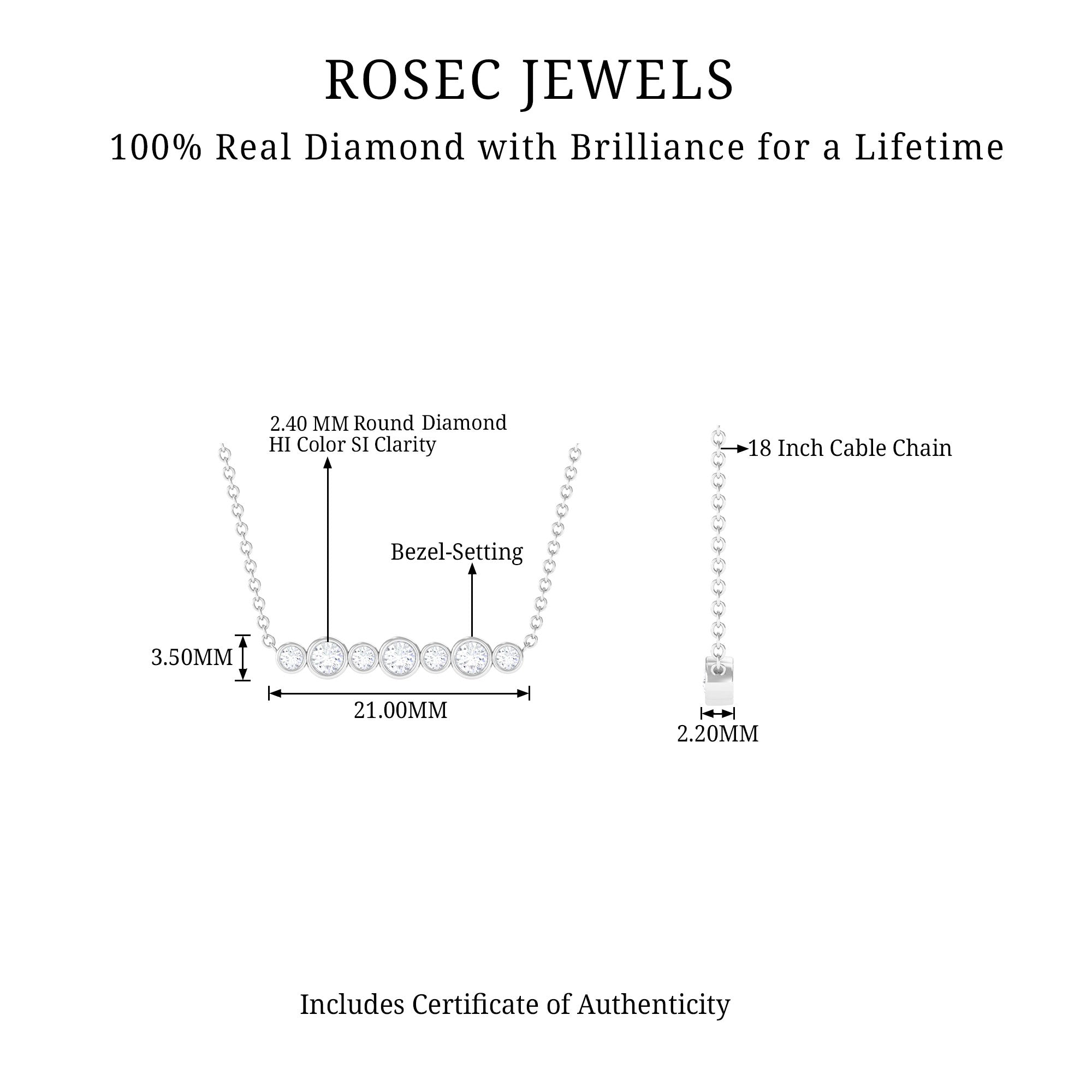 This Diamond Bar Necklace is the true epitome of grace that is a must-have piece of jewelry. This pendant features Round Shape Diamond securely placed in Bezel Setting. This Horizontal Necklace gives an artistic and unique look. Steal the show with the classic shine of HI-SI quality Natural Diamond that reflects grace and charms. Get your lady this beautiful Diamond Pendant Necklace and witness a priceless reaction of her which will be cherished throughout. This Horizontal Bar Necklace will be delivered to you in the classic jewelry box with the authenticity certification.