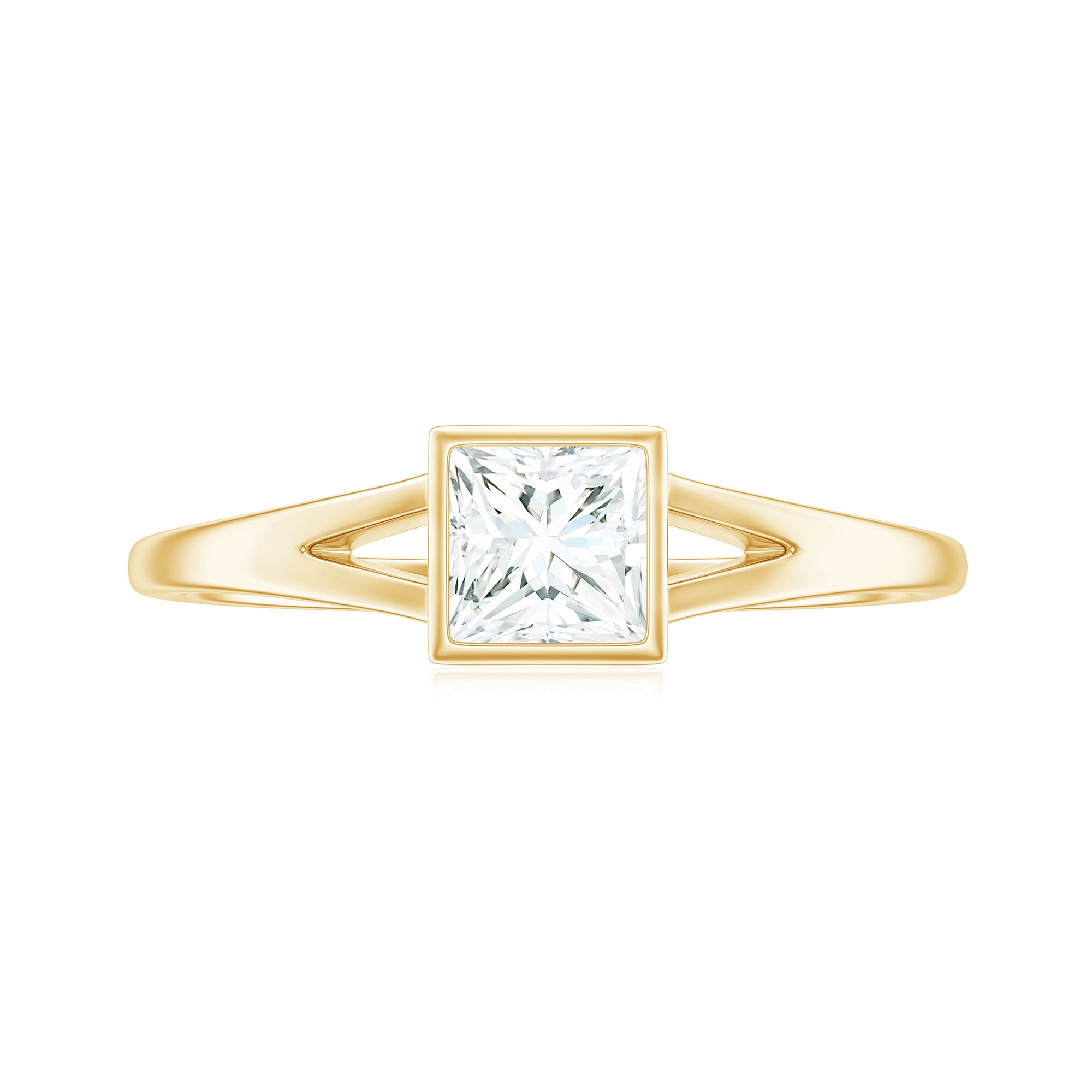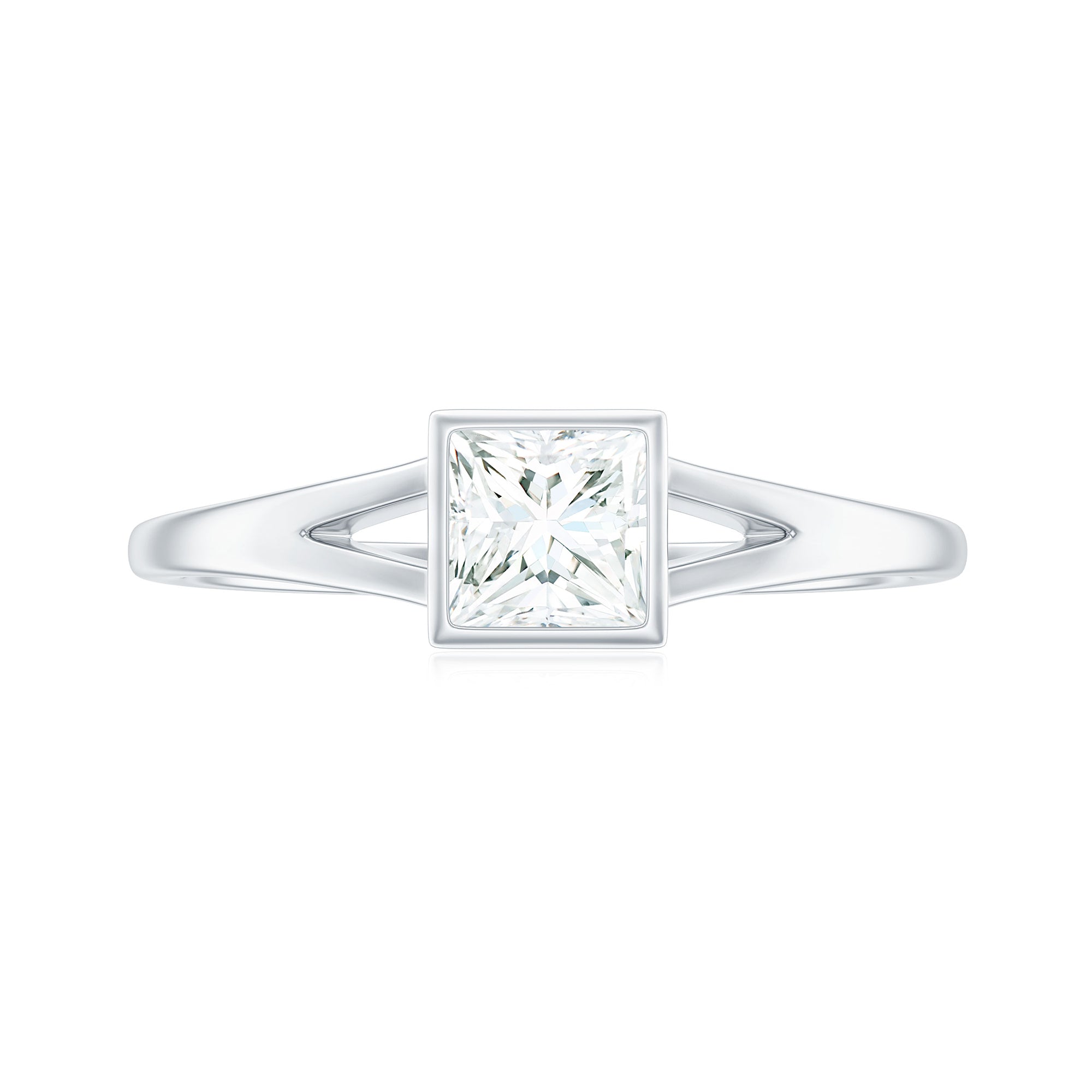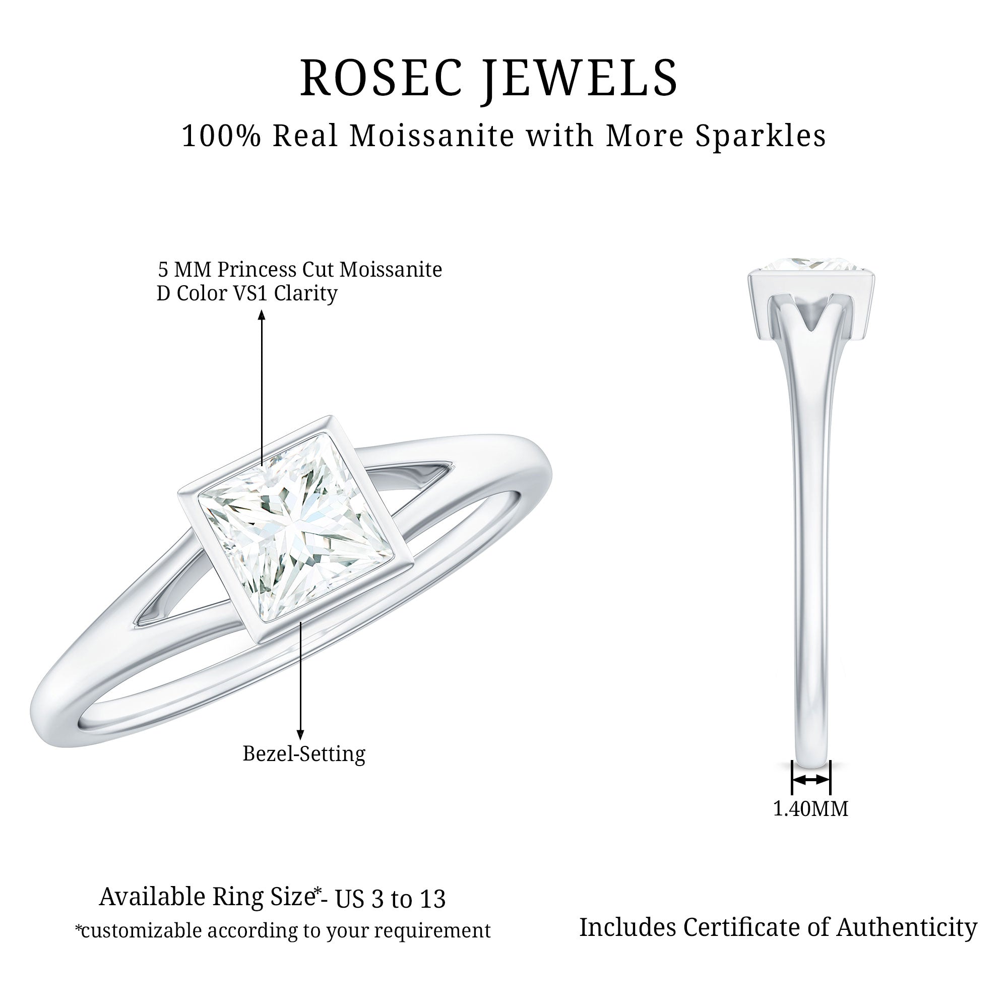 Bezel Set Princess Cut Moissanite Solitaire Promise Ring in Split Shank
