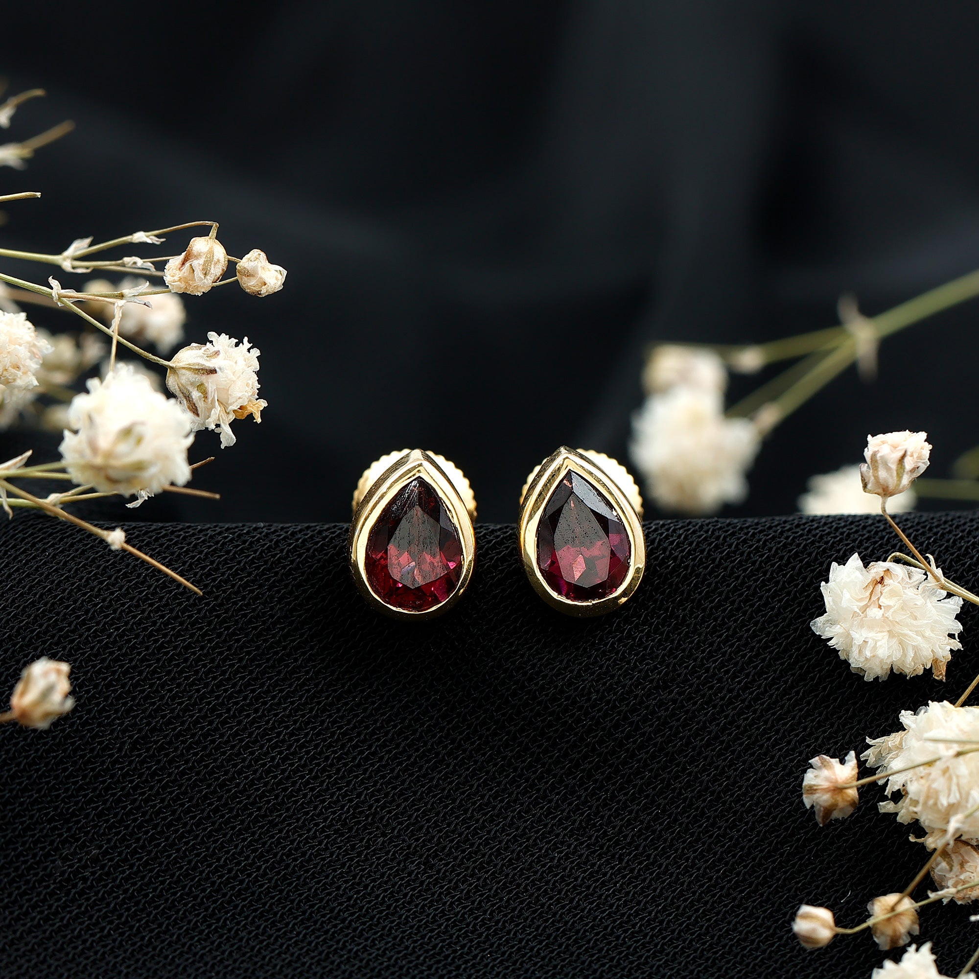 Some pieces are minimal, but leave a lasting impression. These Rhodolite Garnet Earrings are designed with that exact thought in mind. Handcrafted in 14K yellow gold plated silver, they strike a beautiful balance between understated elegance and everyday ease, making them a timeless addition to your jewelry box. Each earring features a 5X7 MM pear shaped rhodolite, nestled in bezel setting that adds a clean, modern feel while securely framing the stone. Designed with screw back closures, these Rhodolite Earrings are comfortable enough for daily wear and secure enough for peace of mind. You can wear them confidently from morning meetings to night outings without missing a beat. The charm of this piece lies in its simplicity and meaning. As the birthstone for June, rhodolite symbolizes love, compassion, and emotional balance, making these Solitaire Stud Earrings more than just a pretty accessory. Arrives in a signature jewelry box with a gemstone certificate, ready to gift or keep close as your new go-to pair. Easy to love, even easier to wear, these Teardrop Stud Earrings are your everyday luxury, with just the right hint of something meaningful.
