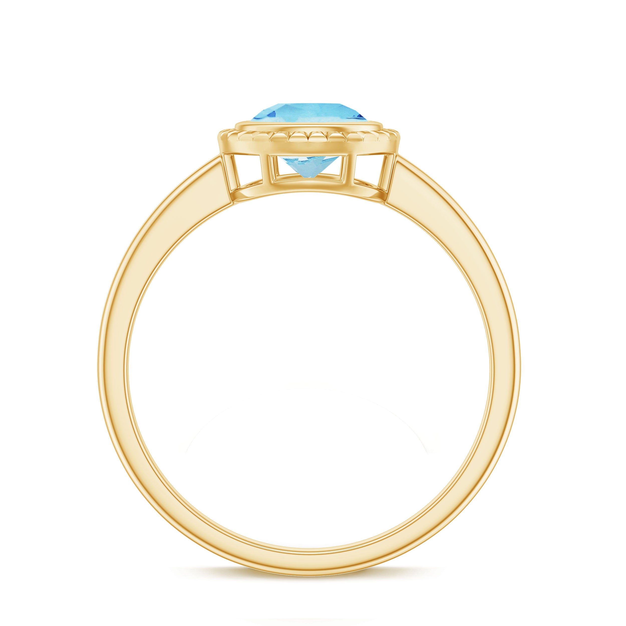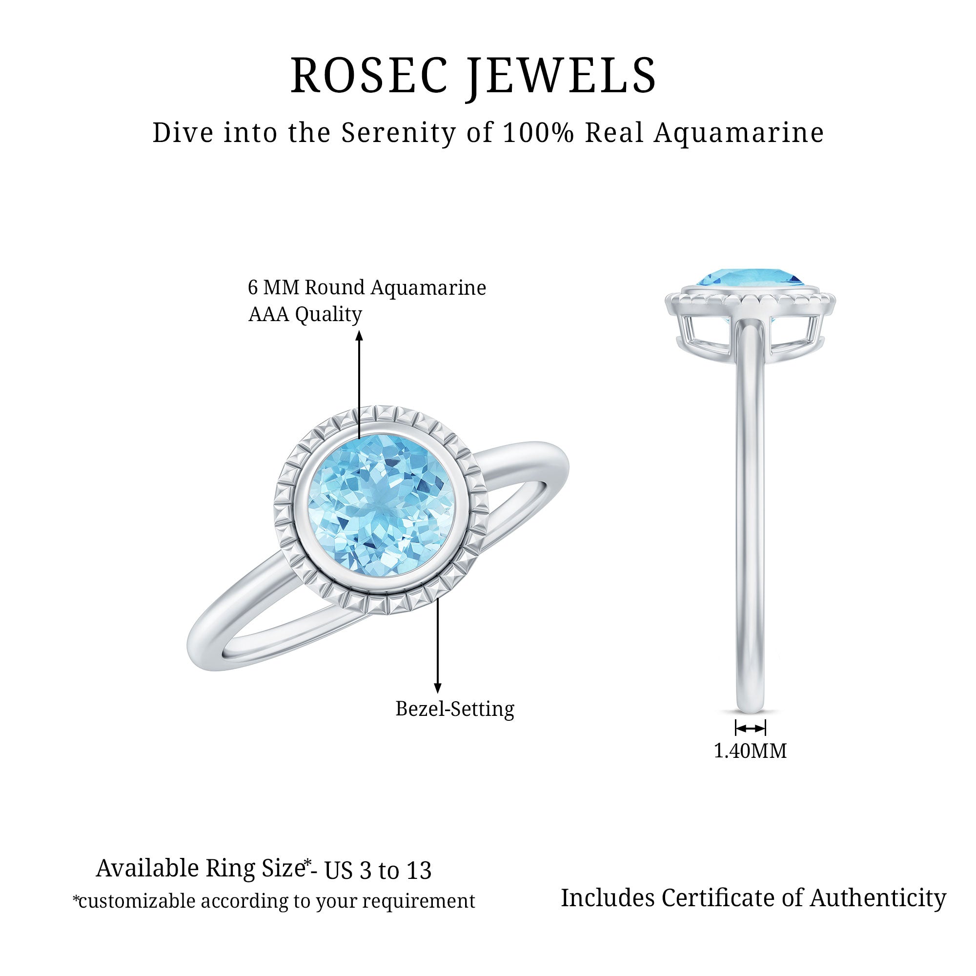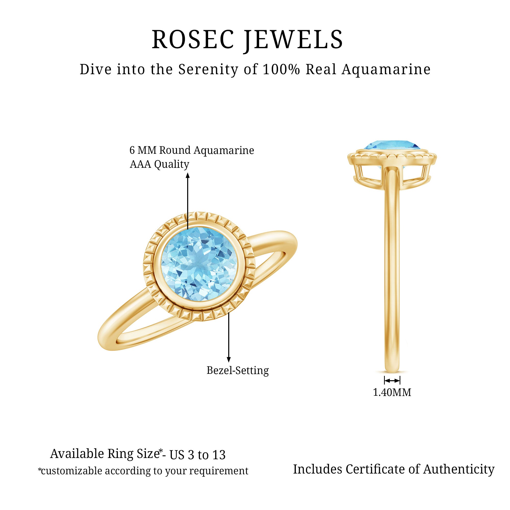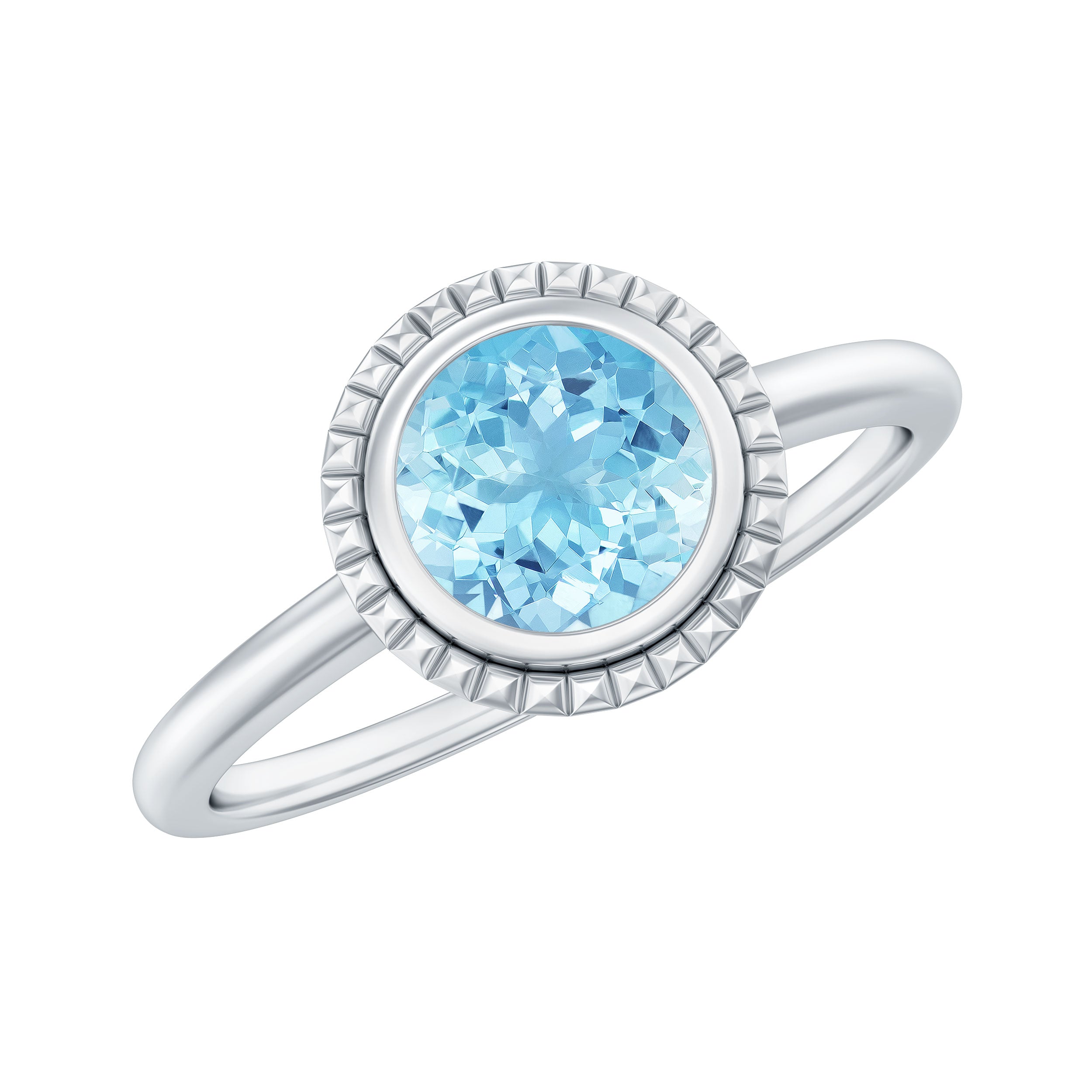 Seal your promise of eternal love and devotion with this Promise Ring, a testament to your enduring commitment. This Solitaire Ring is beautified with a 6 MM Round Shape Aquamarine gemstone set in Bezel Setting with Engraved Detailing. She will surely accept your proposal when you pop up the question with this adorable Aquamarine Ring and will fall in love with you.