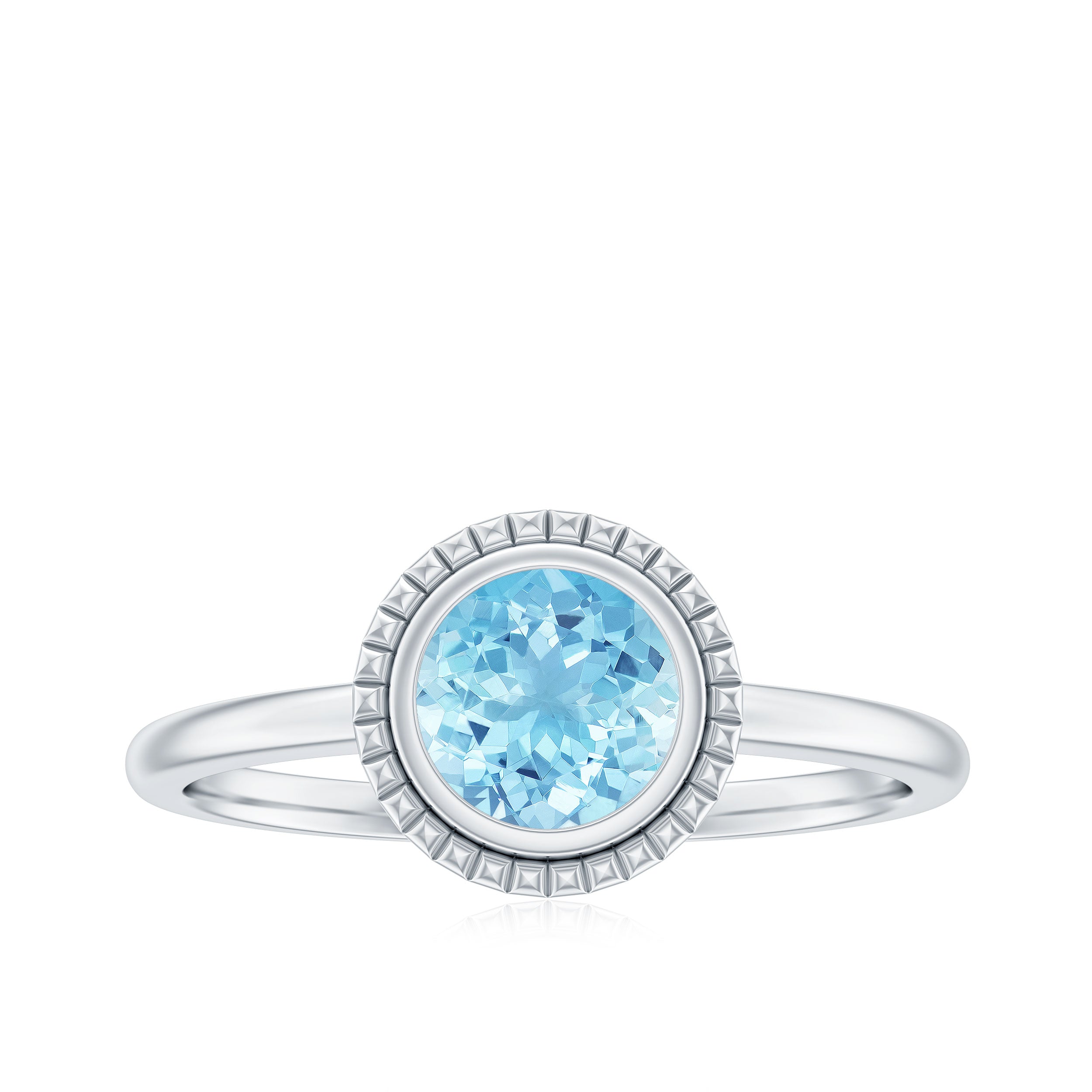 Bezel Set Round Aquamarine Solitaire Promise Ring