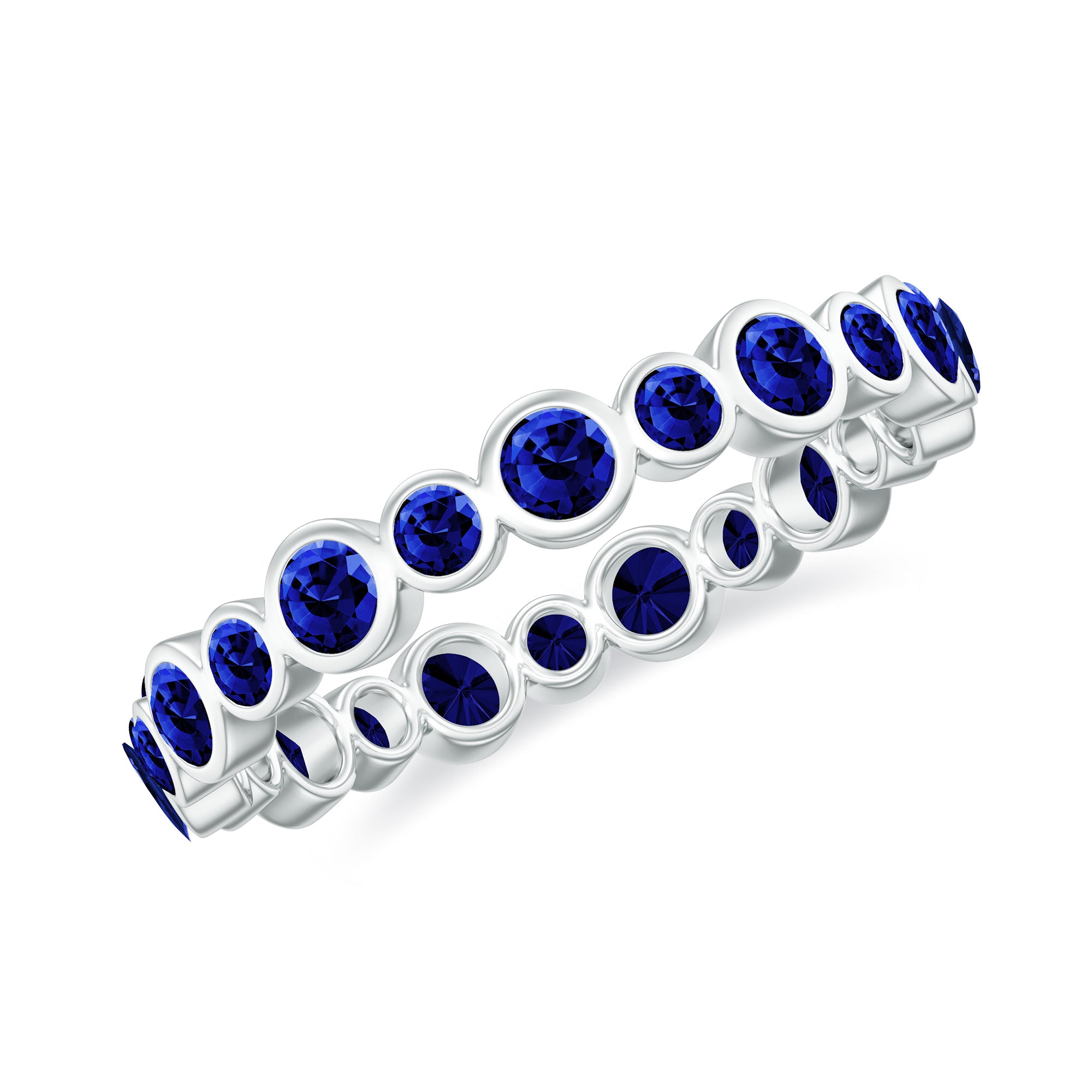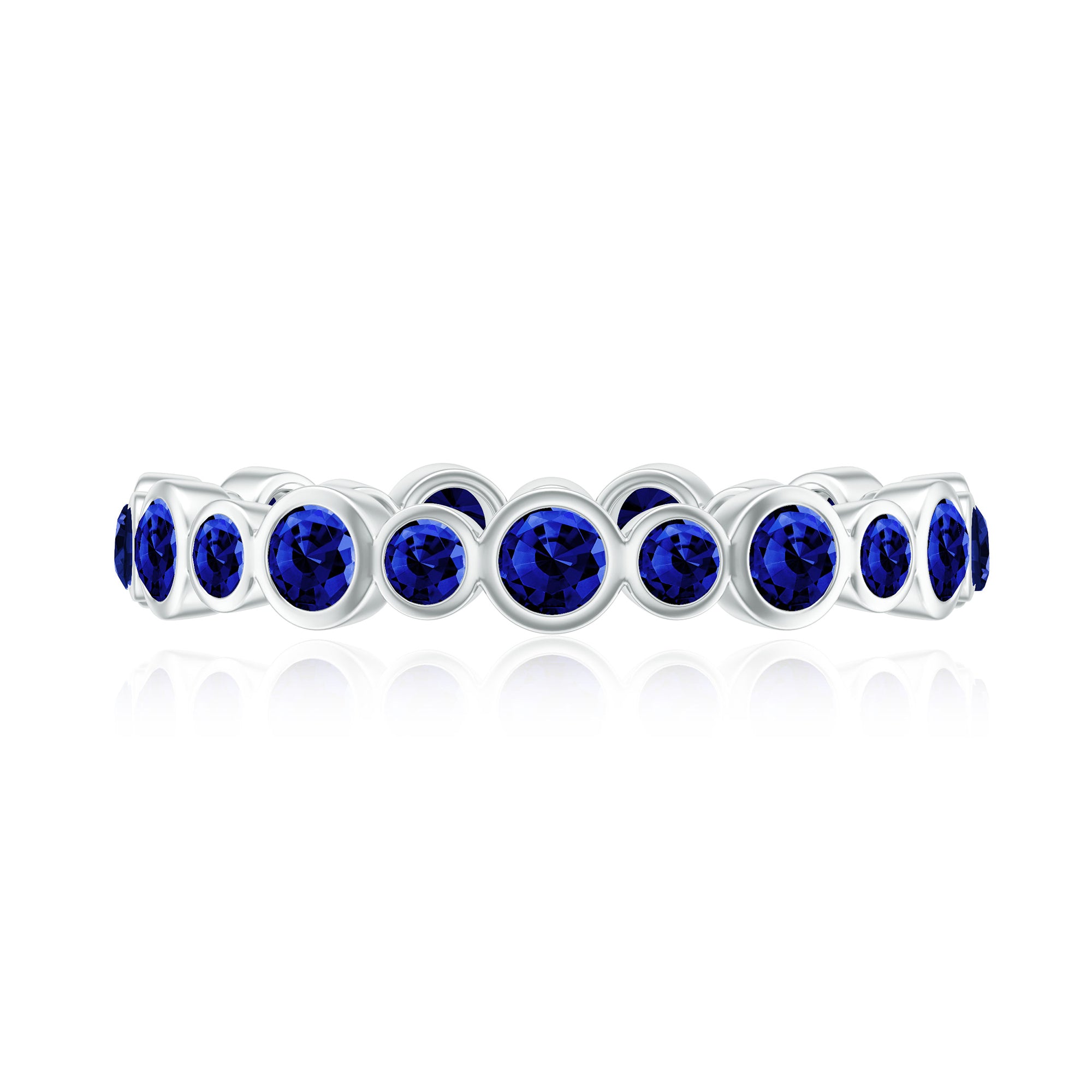 Bezel Set Round Created Blue Sapphire Unique Full Eternity Ring