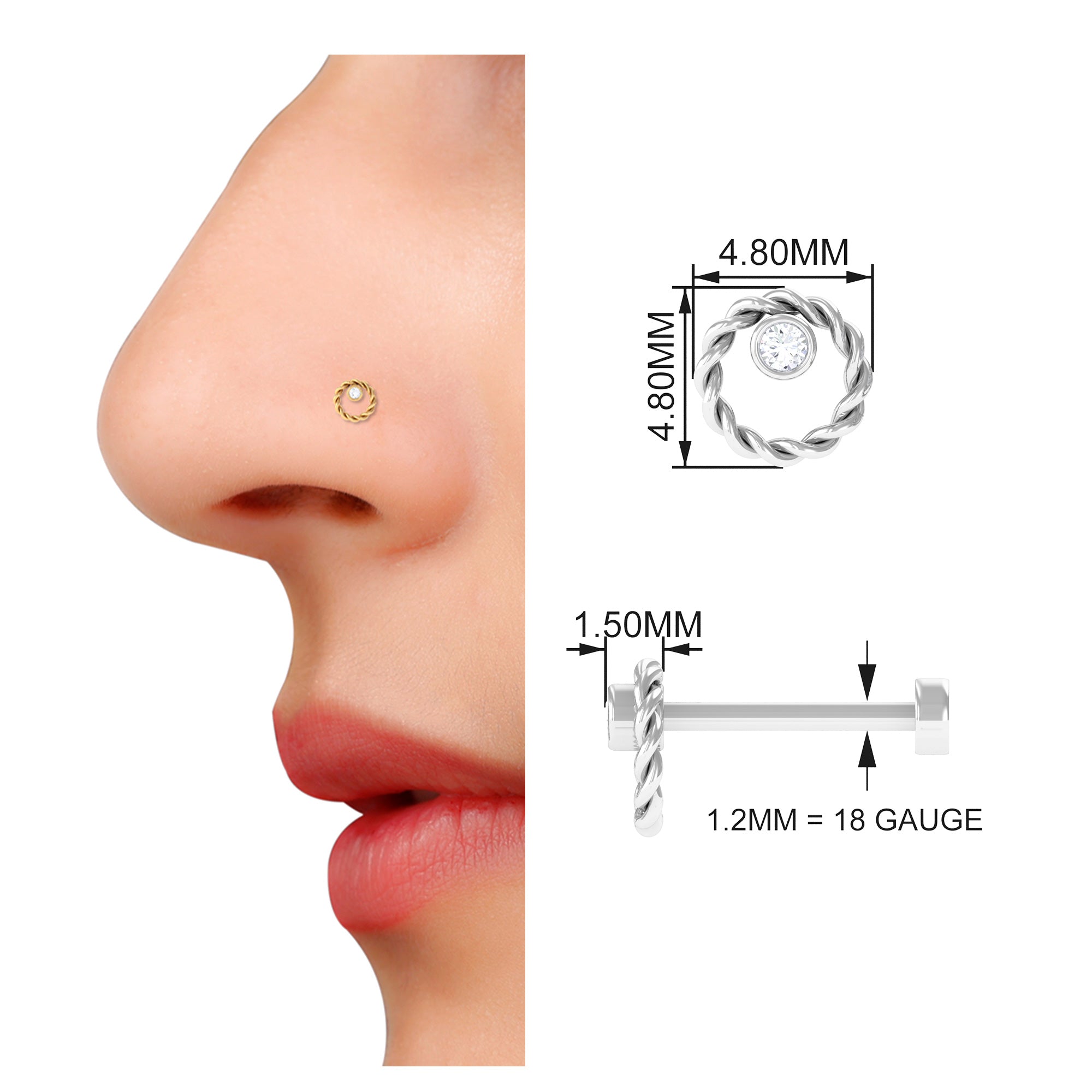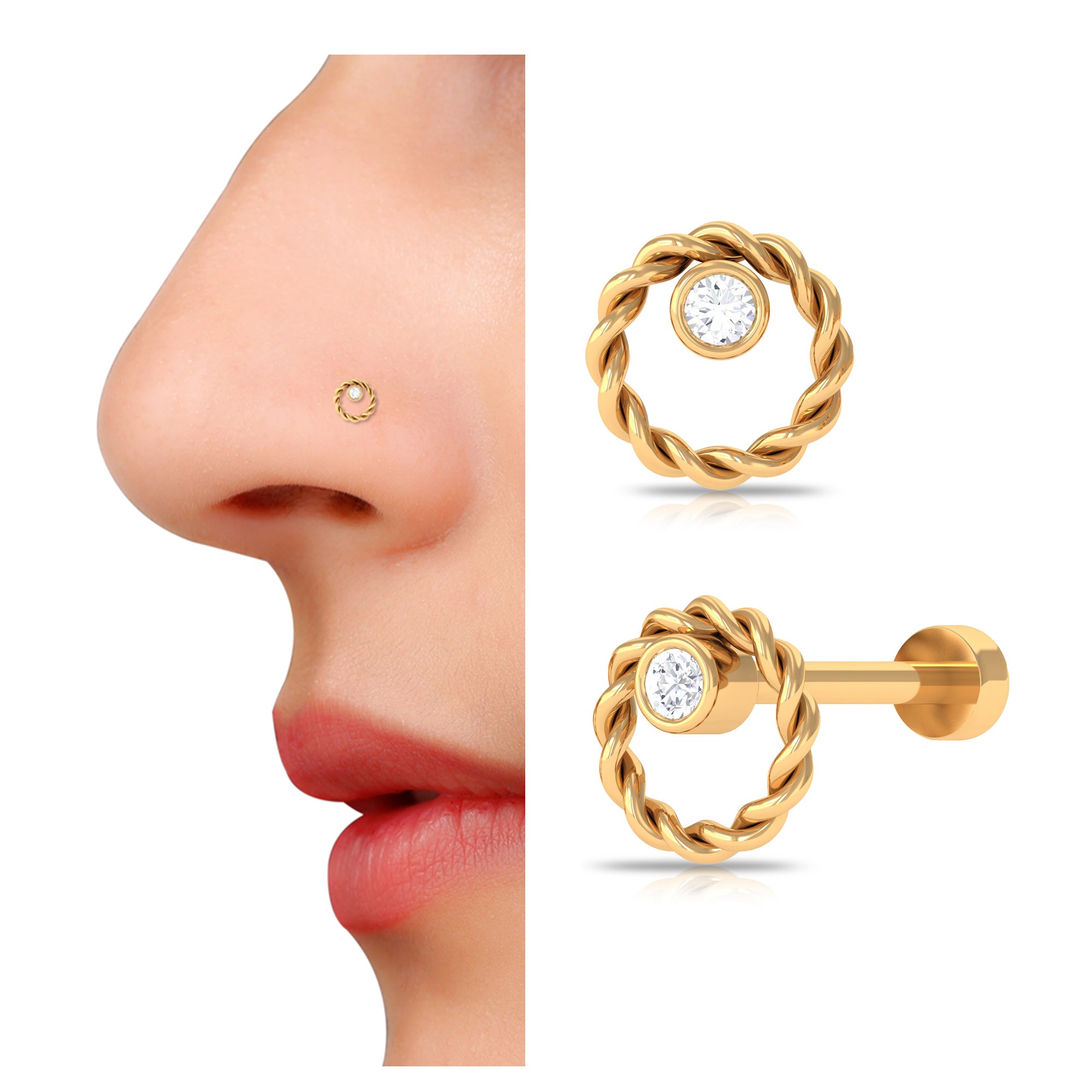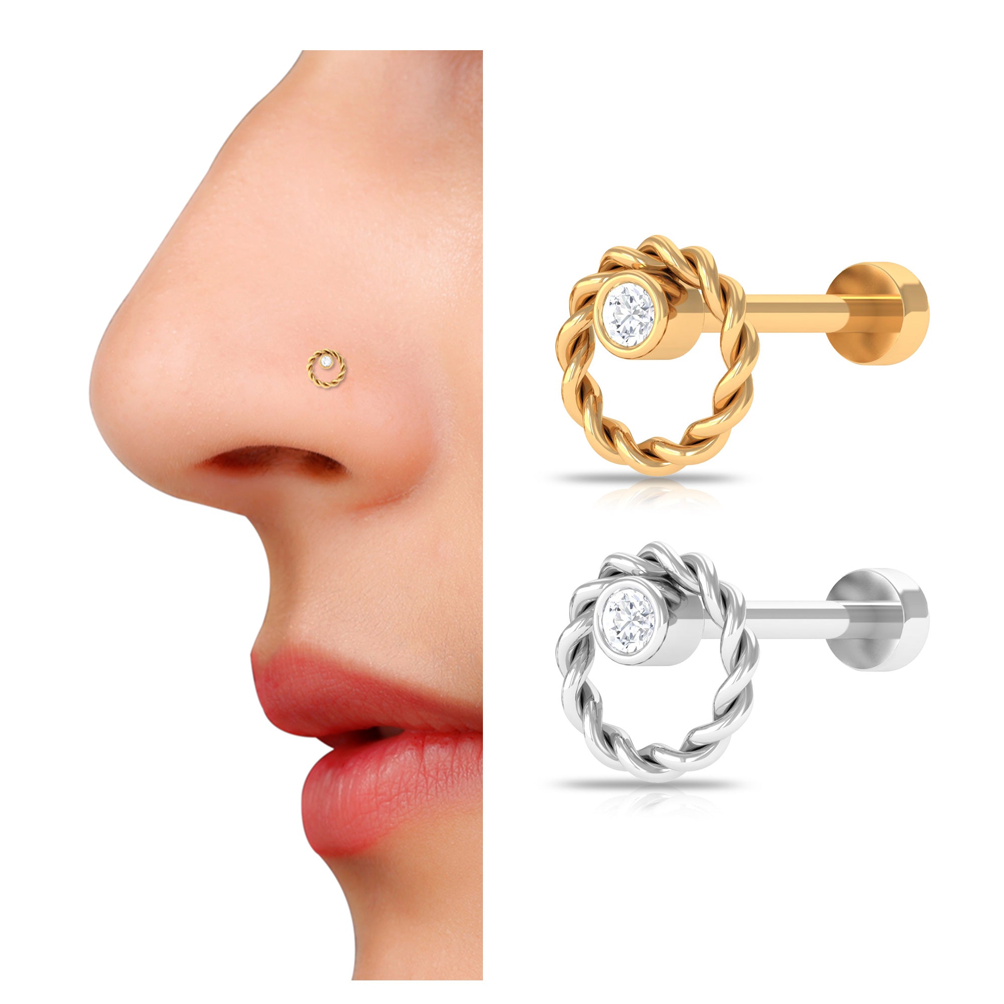 Bezel Set Round Diamond Nose Pin with Twisted Rope