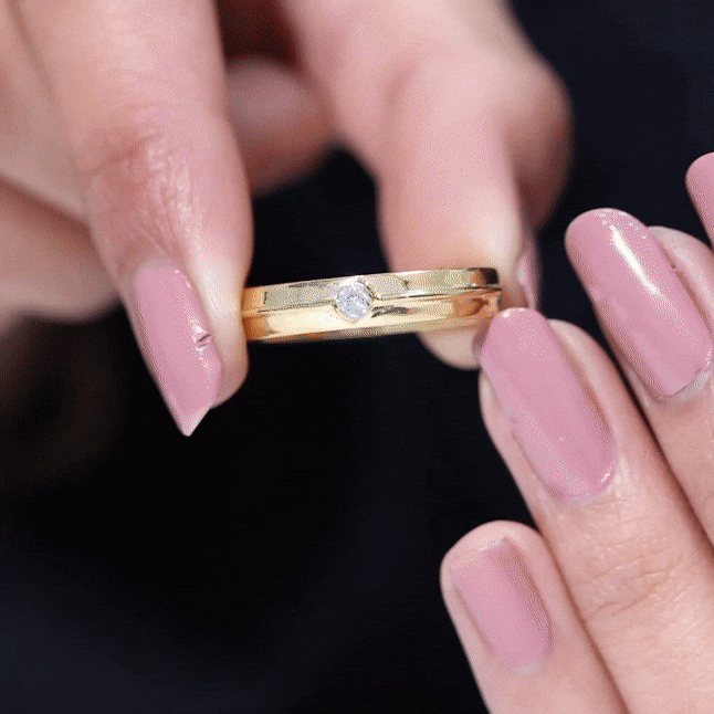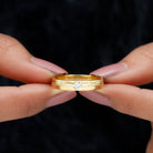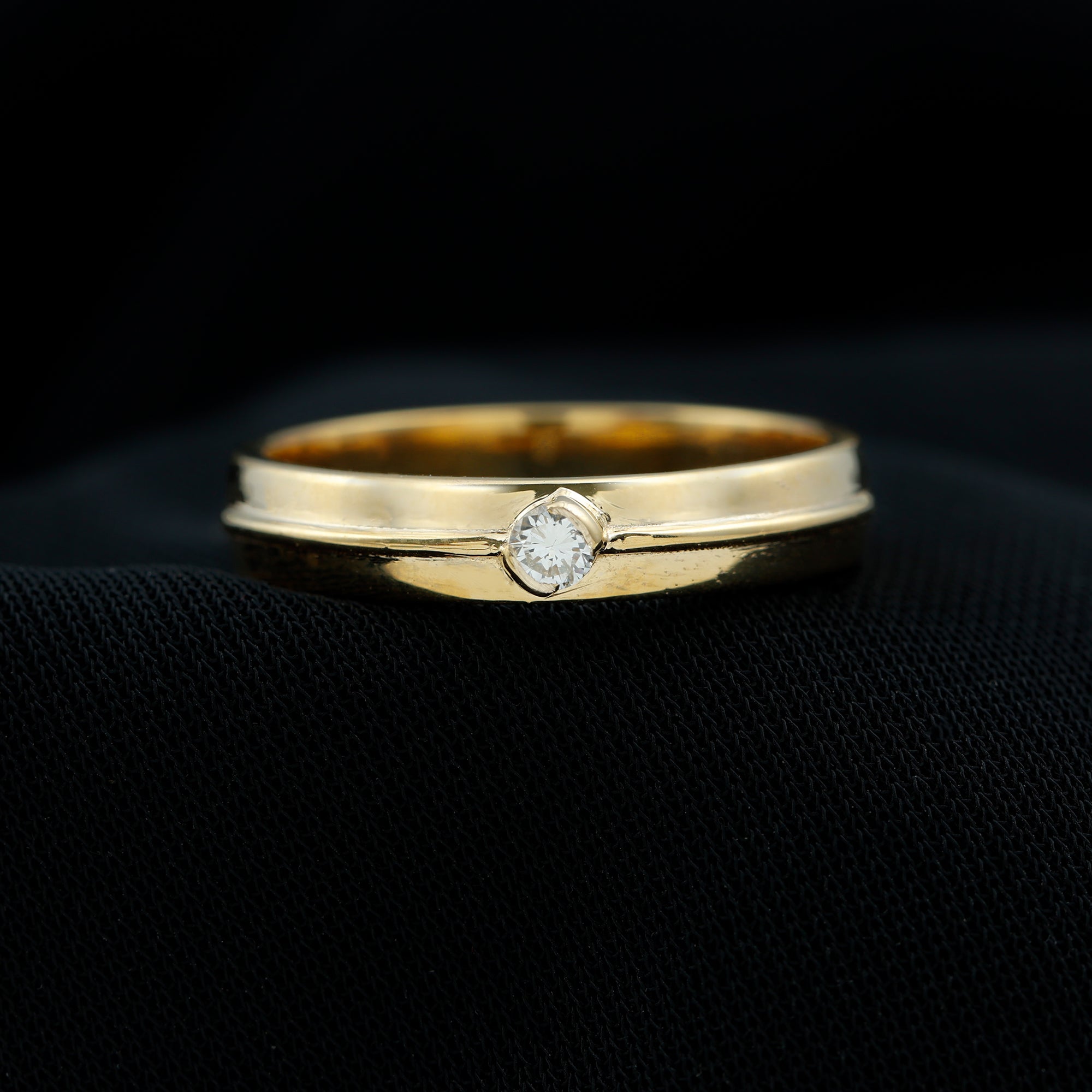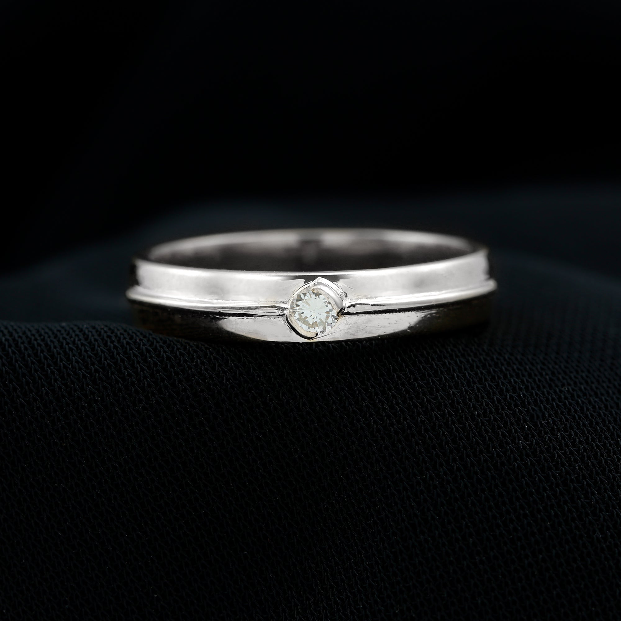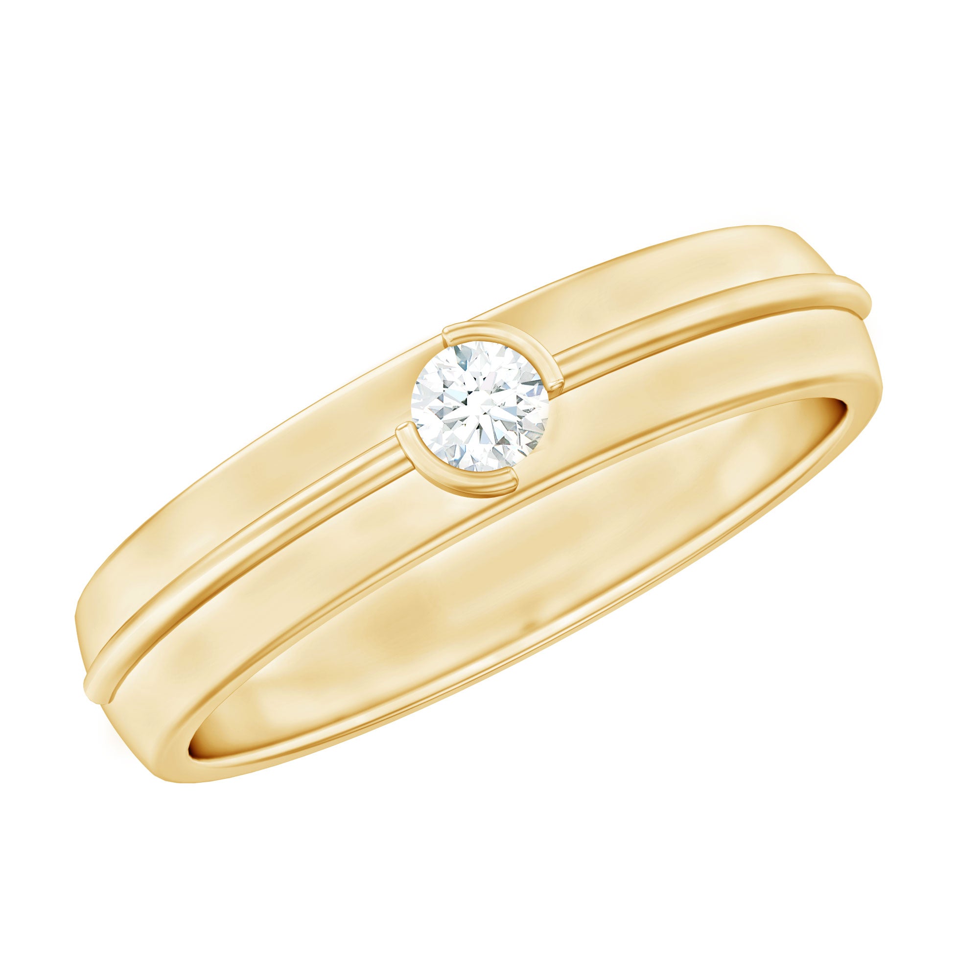 This Mens Moissanite Wedding Band blends bold simplicity with refined craftsmanship, creating a timeless piece designed for everyday wear and lifelong significance. At the heart of the design is a round brilliant cut moissanite, securely set in half bezel setting. The setting provides a sleek, modern frame around the stone, protecting its edges while still allowing plenty of light to enhance its natural brilliance and fire. The band itself features a broad, smooth surface with a subtle engraved line running down the center, leading the eye directly to the sparkling moissanite. This Male Wedding Band has a design that speaks to understated confidence, perfect for the man who values both style and substance. With its comfortable fit and durable construction, this Solitaire Wedding Band is ideal for daily wear. Whether chosen as a wedding ring or a personal symbol of commitment, this Modern Mens Wedding Band offers a sophisticated balance of tradition and modern design. Complete with a timeless silhouette and a brilliant center stone, this band is a meaningful choice built to last a lifetime.
