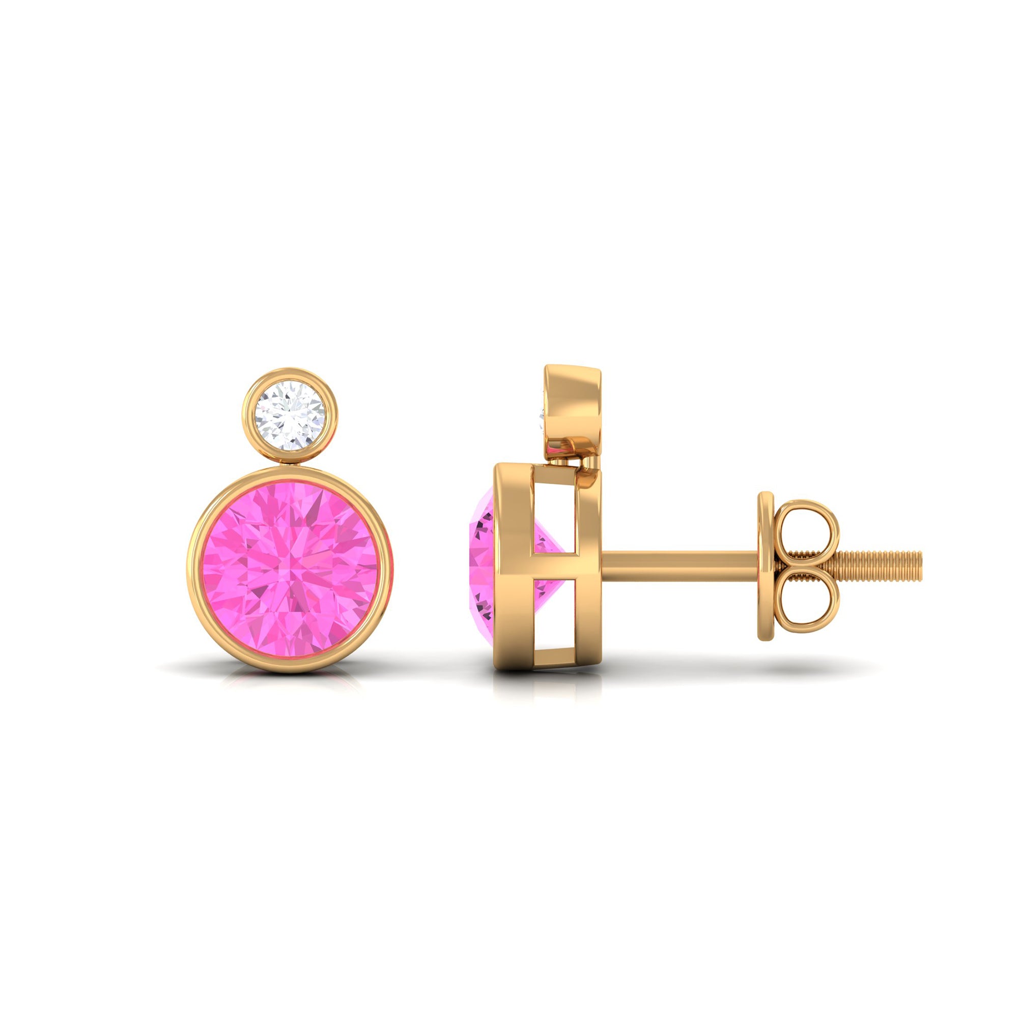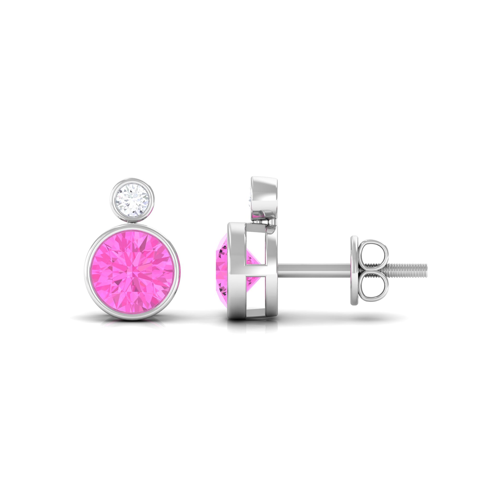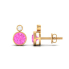 Bezel Set Round Pink Sapphire and Diamond Solitaire Stud Earrings