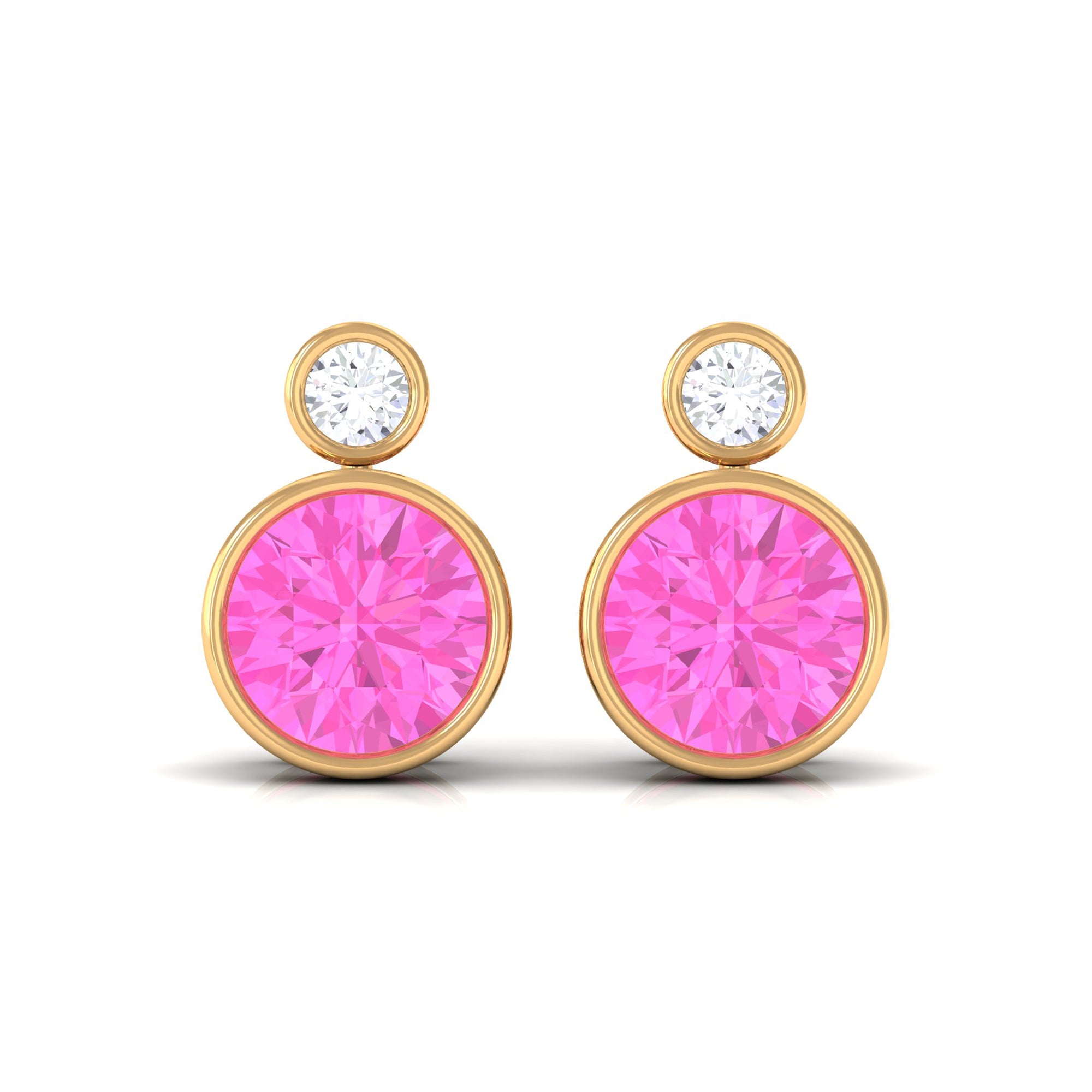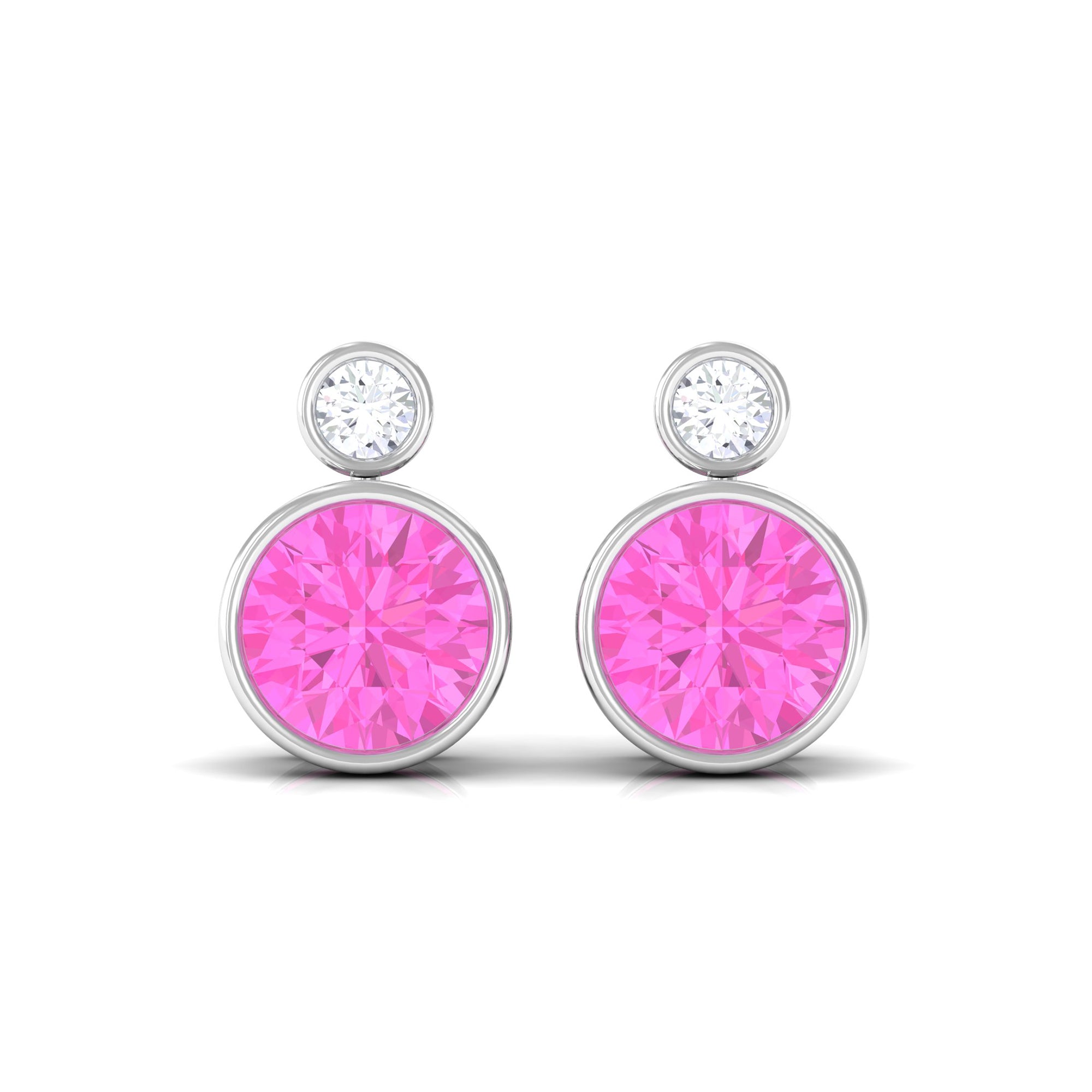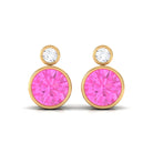 These Attractive and Eye-Catching Solitaire Earrings embellished with Round Shape Solitaire Pink Sapphire Gemstone and round Diamond on the top is set in a bezel setting. An elegant and lovely anniversary and birthday present for your loved ones.