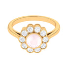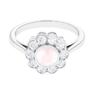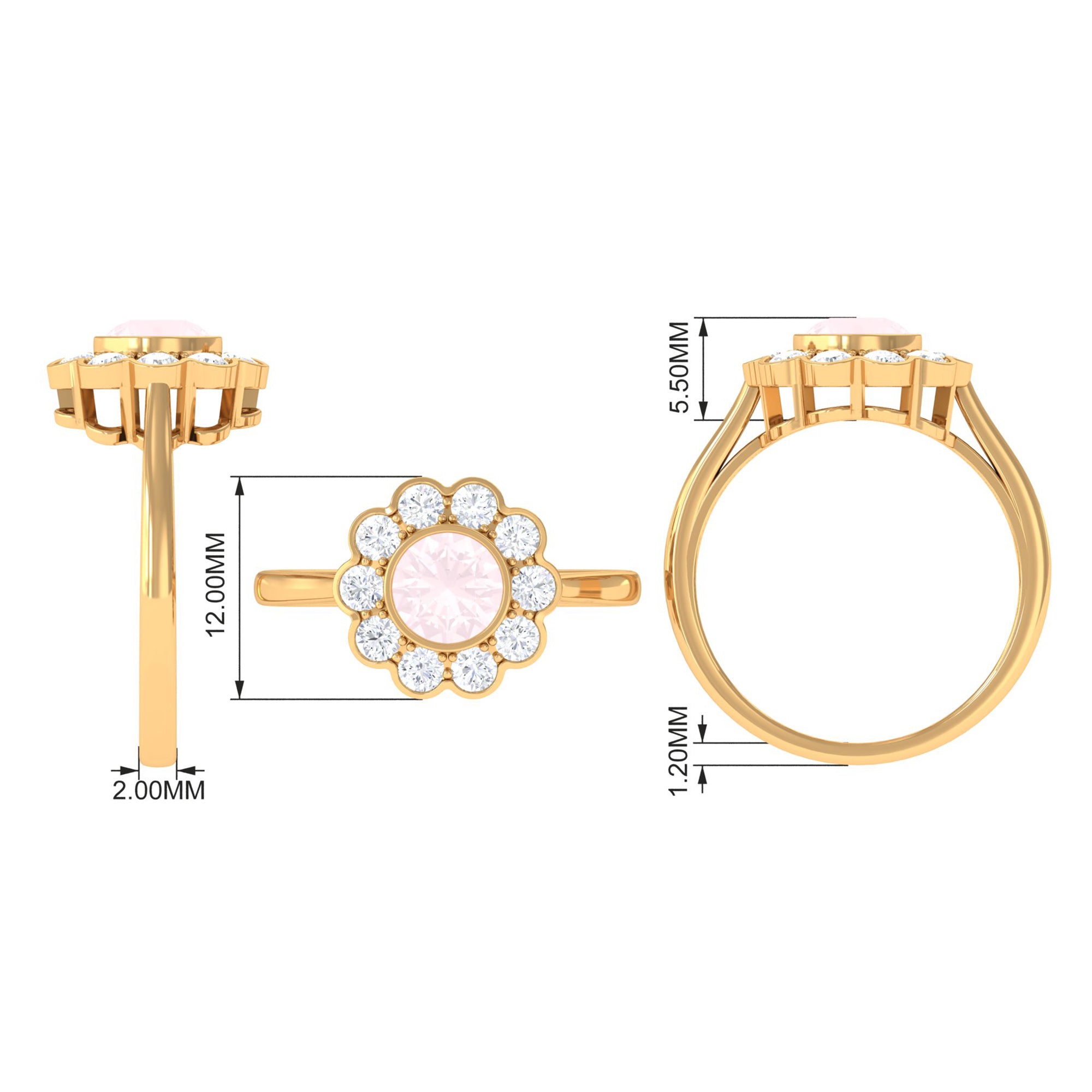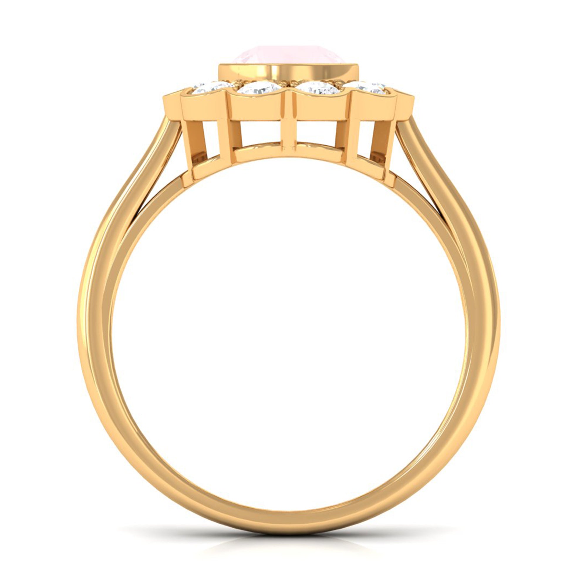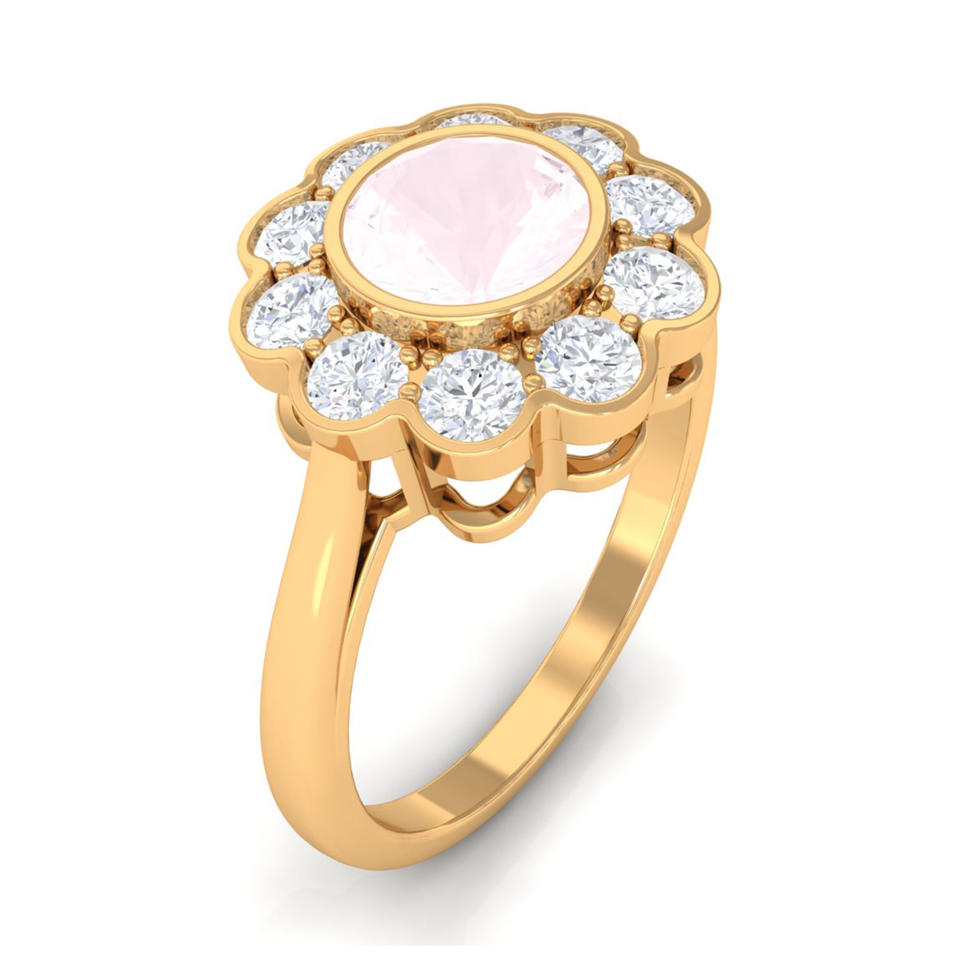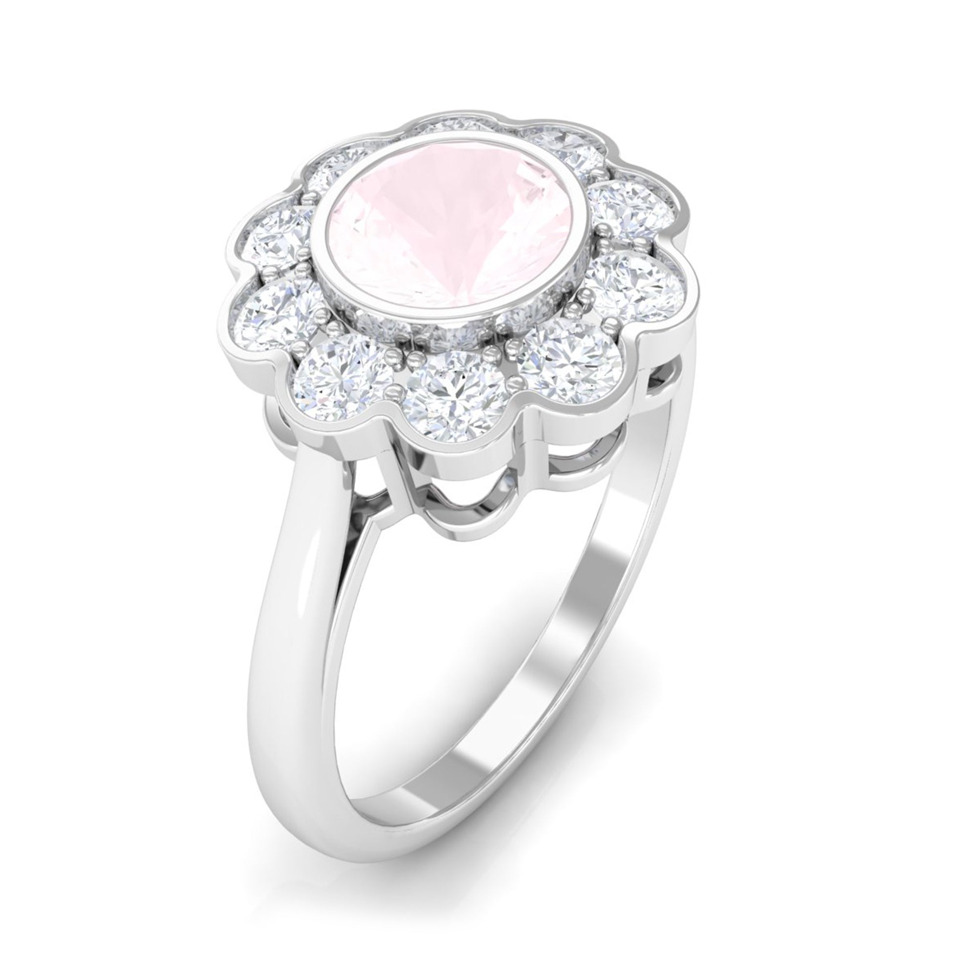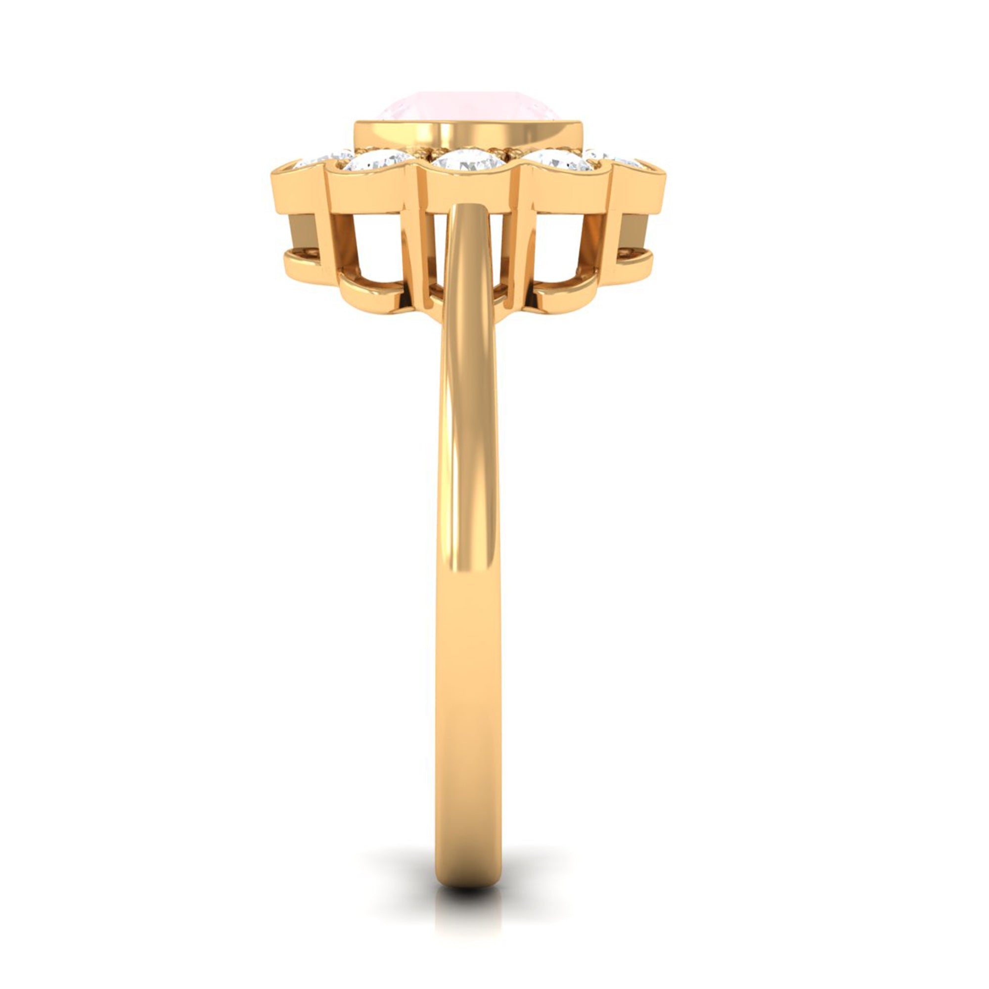 Bezel Set Round Rose Quartz Halo Engagement Ring with Diamond
