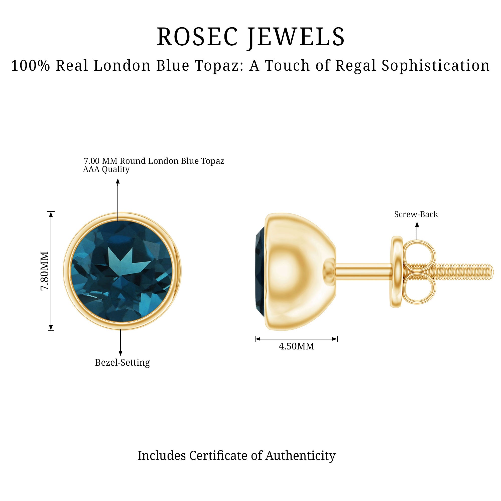 Bezel Set Solitaire London Blue Topaz Everyday Stud Earrings