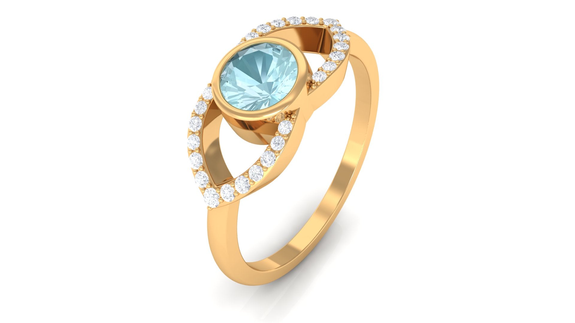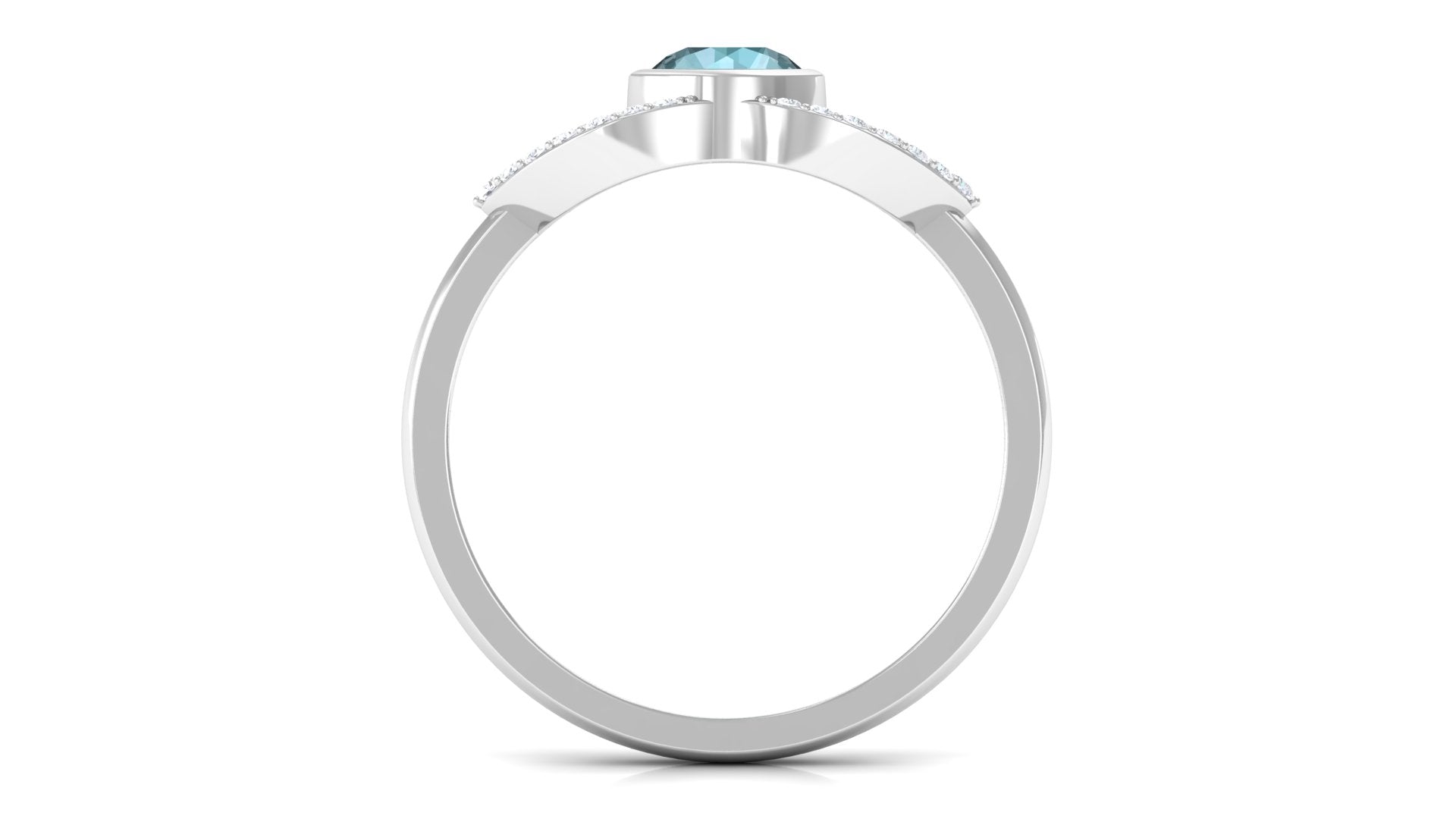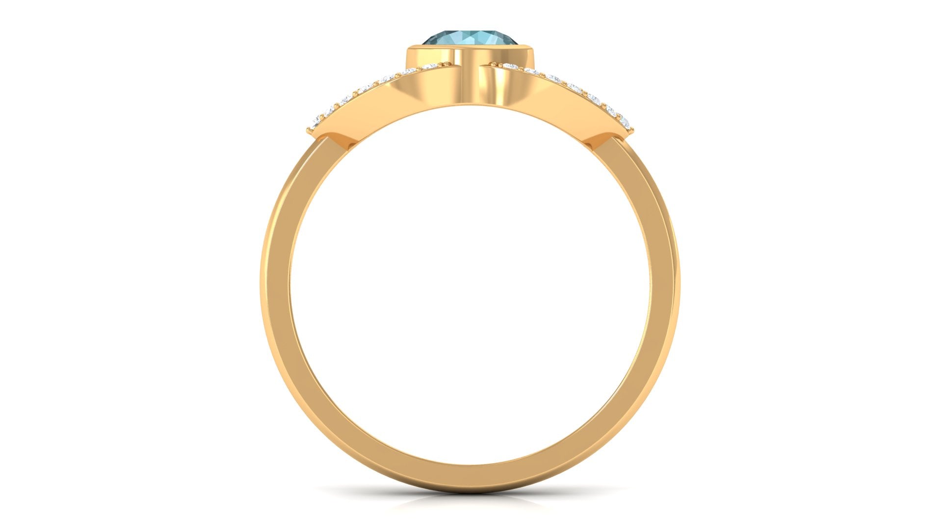 Bezel Set Solitaire Sky Blue Topaz and Diamond Ring in Split Shank