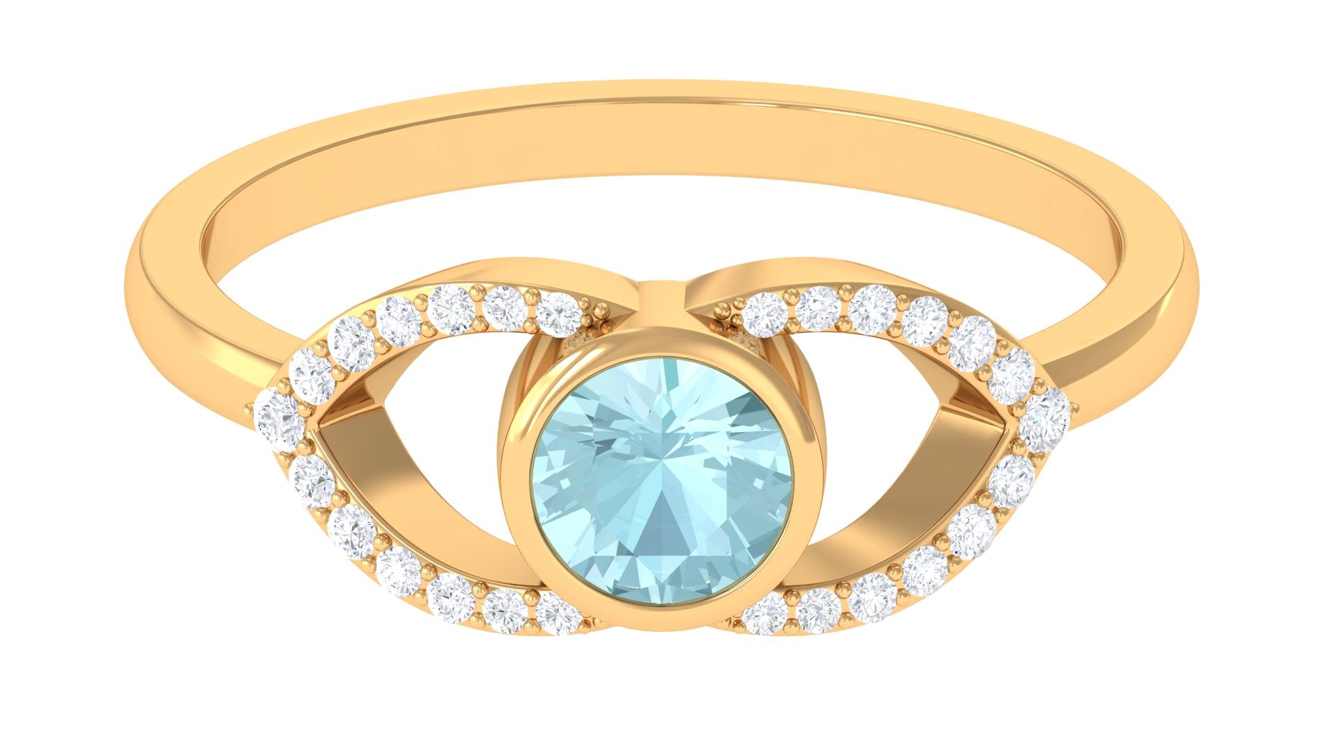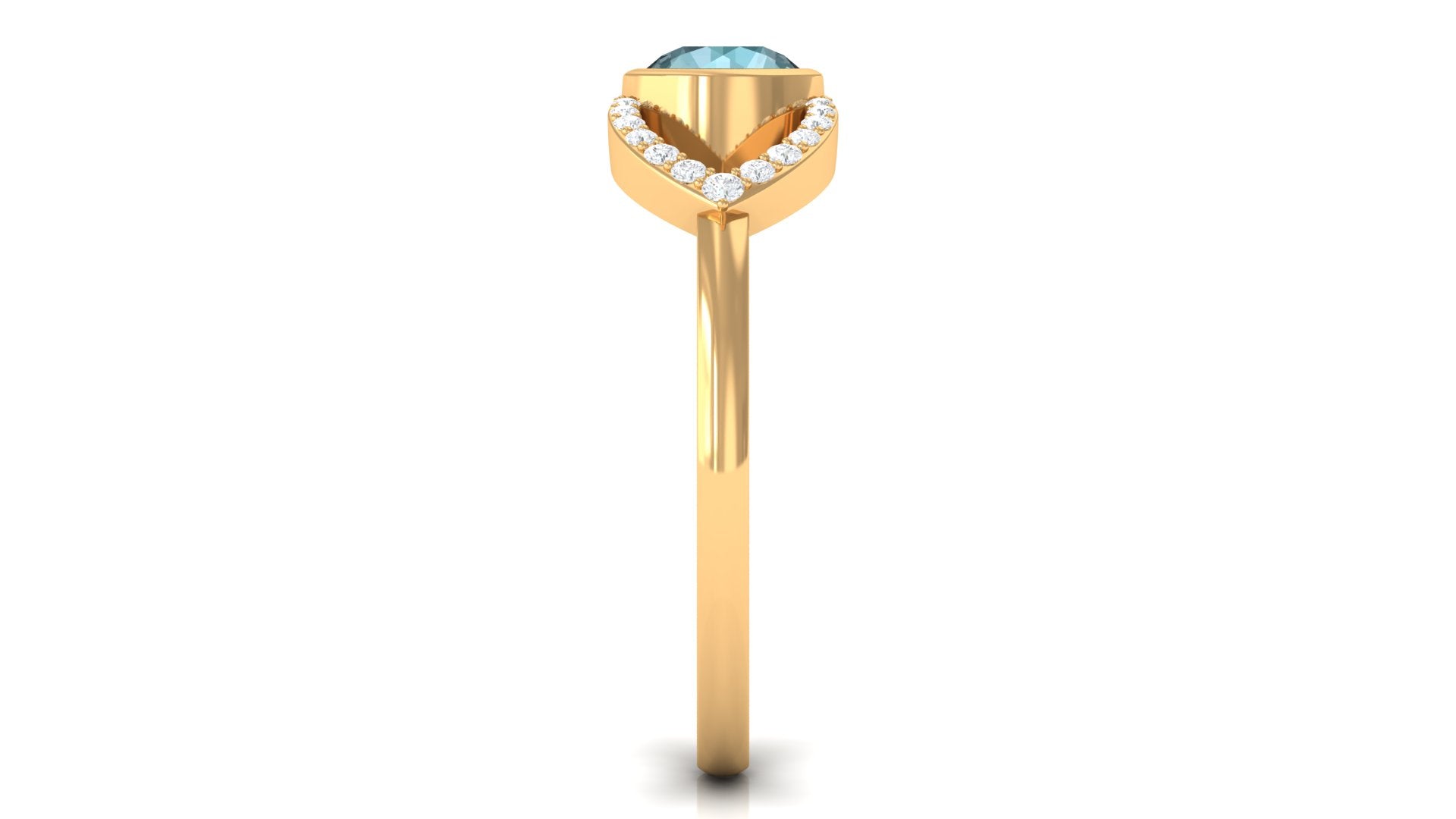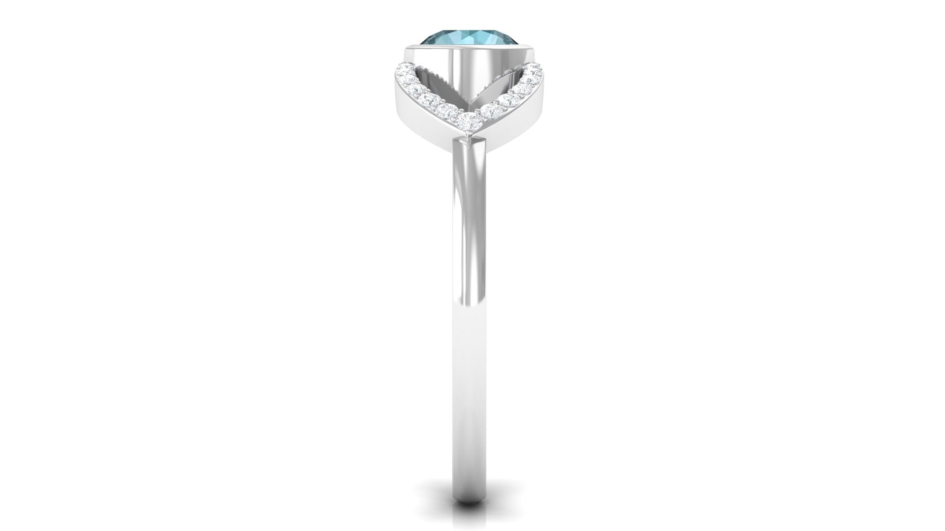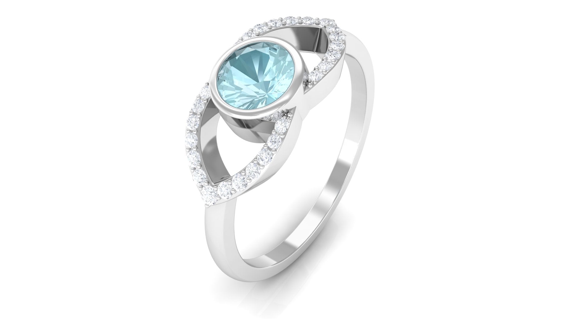 Bezel Set Solitaire Sky Blue Topaz and Diamond Ring in Split Shank