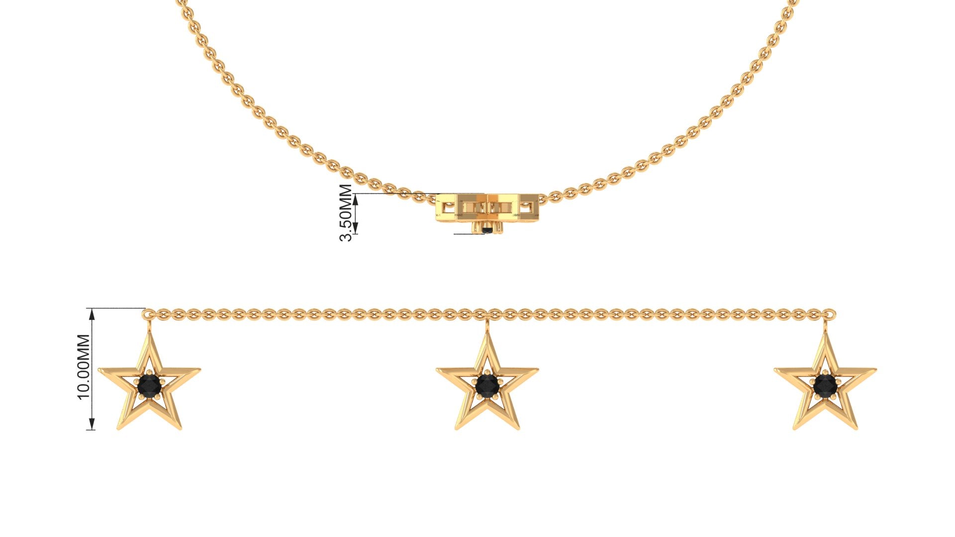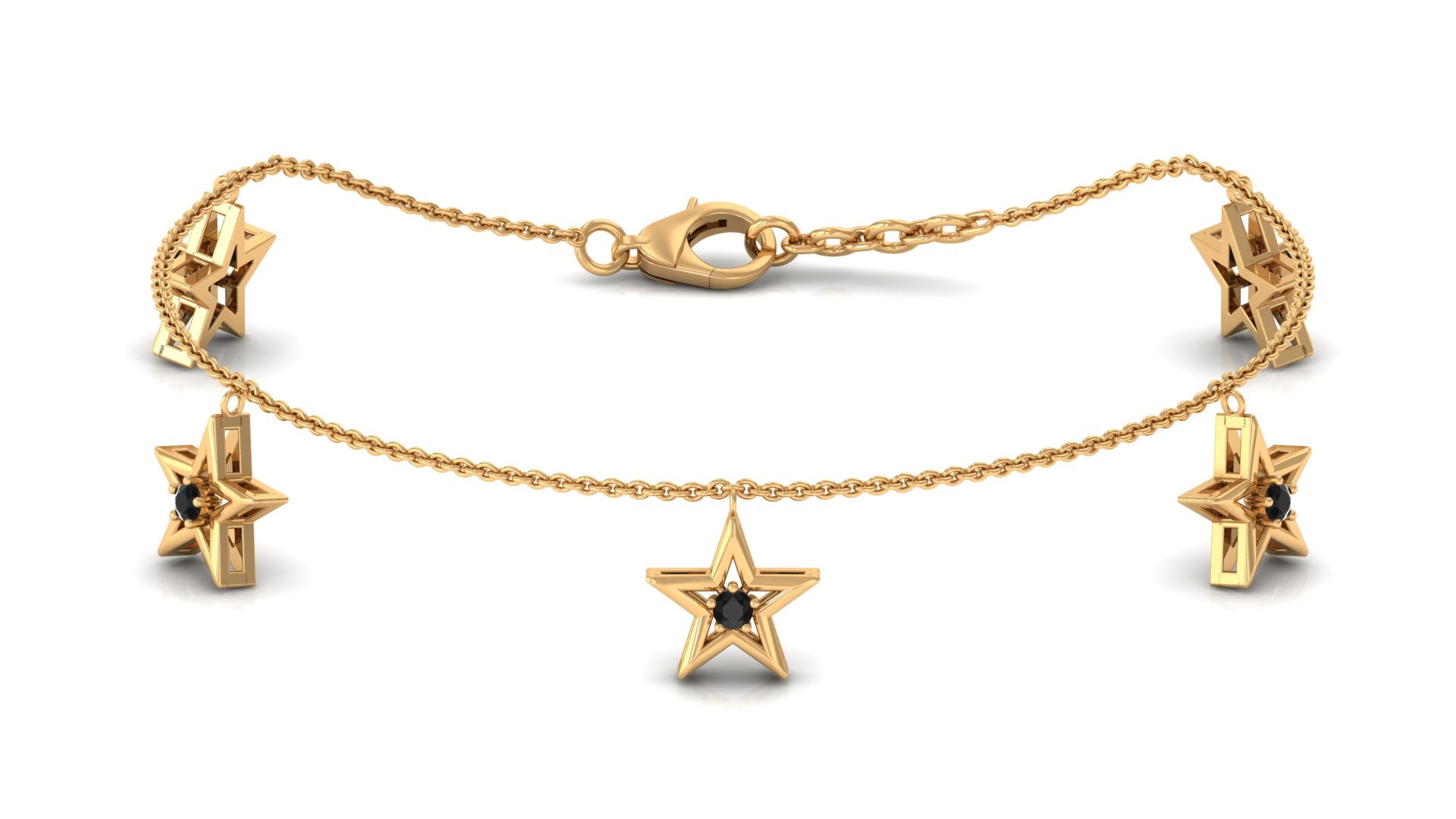 Illuminate your style with the mysterious allure of this Black Diamond Bracelet, where timeless sophistication meets celestial charm. Each star charm is adorned with brilliant round black diamond set in secure prongs, creating a captivating contrast that evokes the depth and mystery of the night sky. The mesmerizing sparkle of the black diamonds reflects light in the most enchanting way, embodying elegance and individuality. Designed for both comfort and durability, this Black Diamond Chain Bracelet features a delicate yet resilient construction that drapes gracefully around your wrist, offering a light and luxurious feel. The adjustable lobster clasp ensures a perfect fit, making it ideal for wearing alone as a refined statement or layering with other bracelet for a contemporary, stacked look. This Celestial Bracelet is perfect for those who are drawn to the magic of the stars, the mystery of the universe, and the beauty found in darkness and light. Whether it’s a birthday, anniversary, or a special gift of inspiration, this bracelet carries a message of dreams, strength, and eternal elegance. With its timeless design and the bold sophistication of black diamonds, this Star Shaped Stackable Bracelet will be a treasured keepsake, symbolizing confidence, mystery, and enduring beauty for years to come.