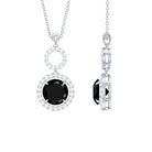 Black Onyx and Diamond Halo Dangle Pendant Necklace