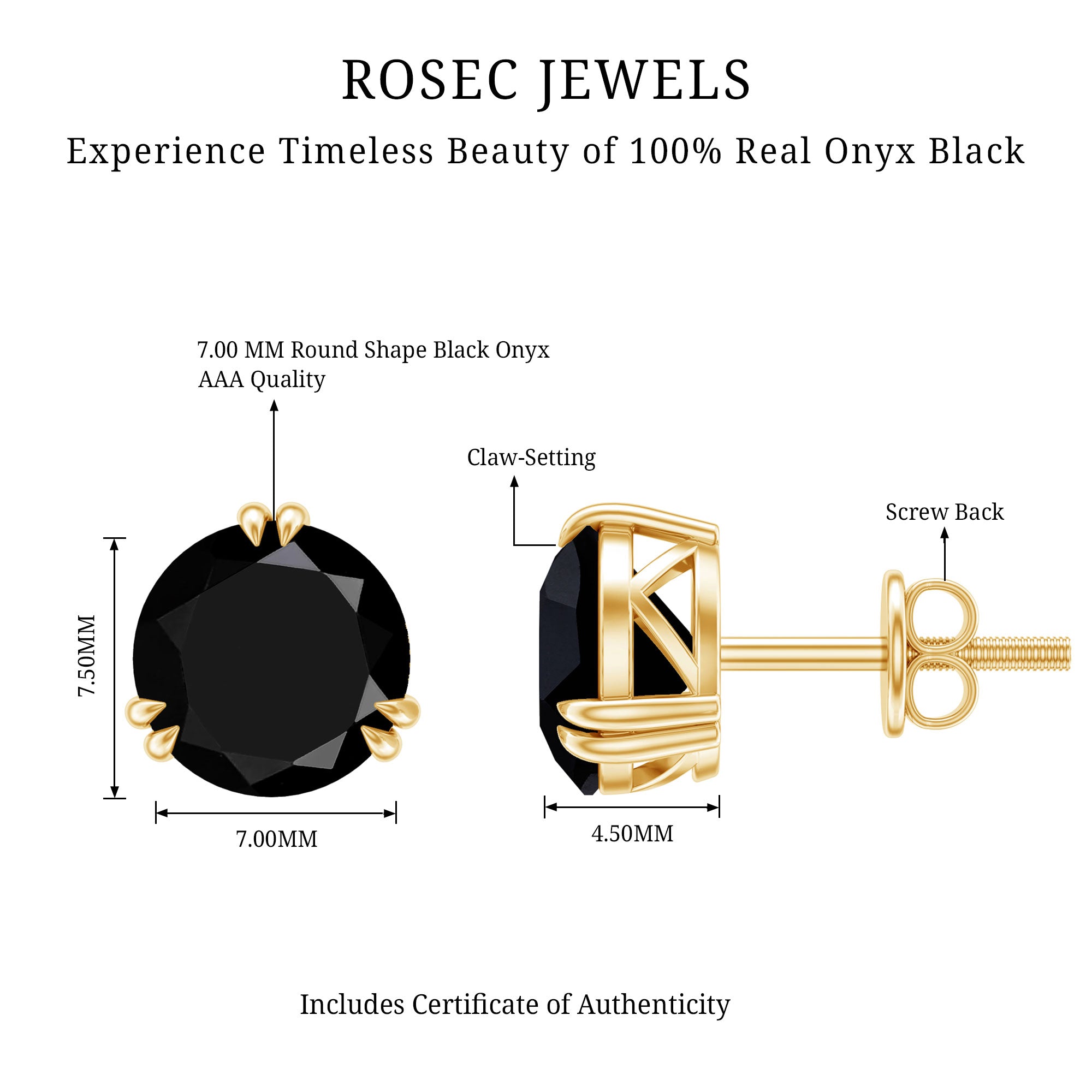 Designed for those who love timeless elegance, these Black Onyx Stud Earrings bring a perfect balance of simplicity and style. Features a 7 MM round cut black onyx stone, held securely in double claw setting. The classic stud design makes them versatile, comfortable, and easy to wear every day, yet classy enough for special occasions. The screw back closures ensure the Solitaire Stud Earrings stay firmly in place, giving you confidence and ease from morning to night. Their sophisticated shape allows them to pair effortlessly with any outfit, whether you are heading to work, a casual outing, or an evening celebration. AAA quality black onyx stones provide lasting durability and shine, giving you jewelry that remains beautiful for years. Crafted with care, these Black Stone Studs are designed to feel personal, helping you express your unique sense of style with a subtle statement. Arriving in a gift-ready jewelry box, they make a thoughtful present for someone special or a well-deserved treat for yourself.