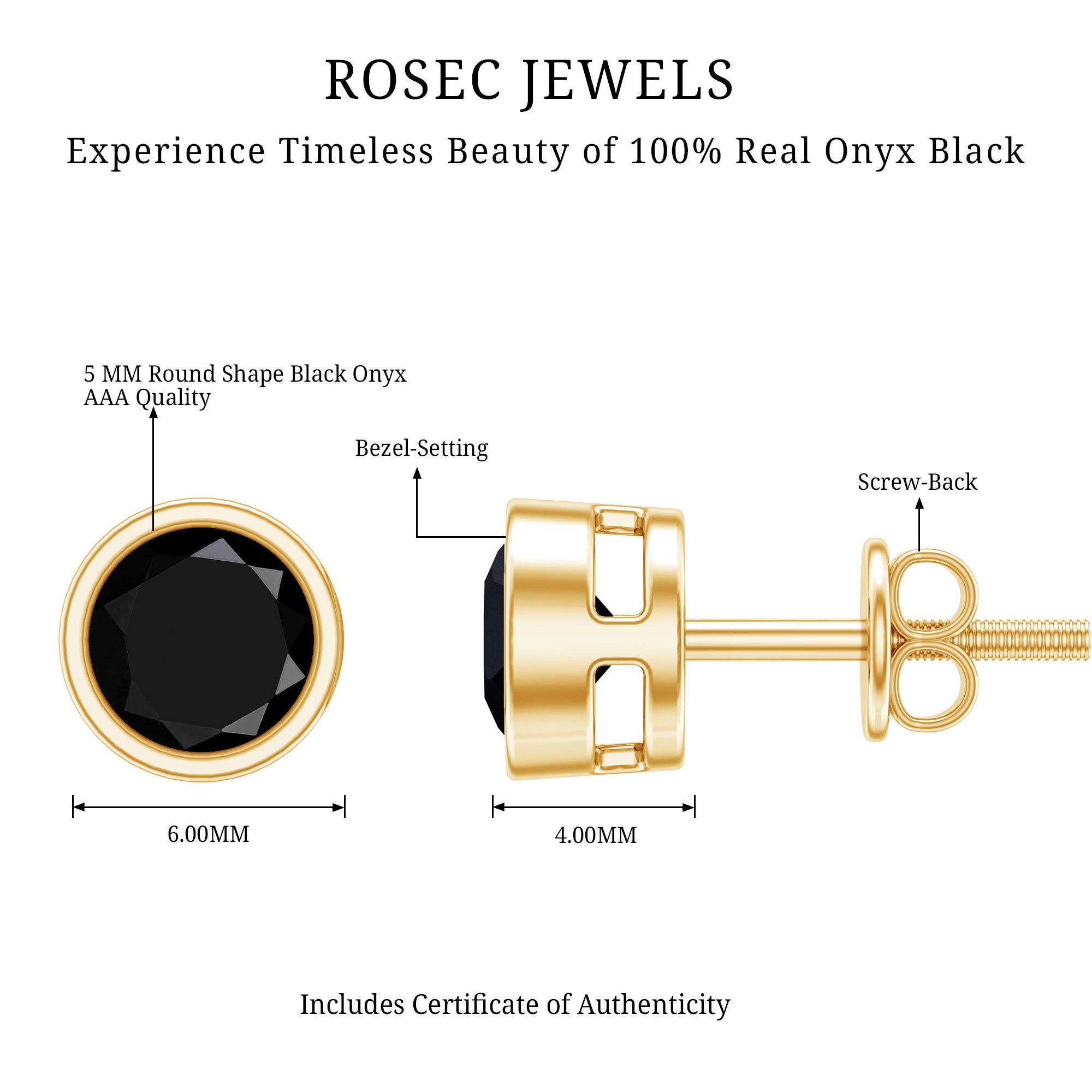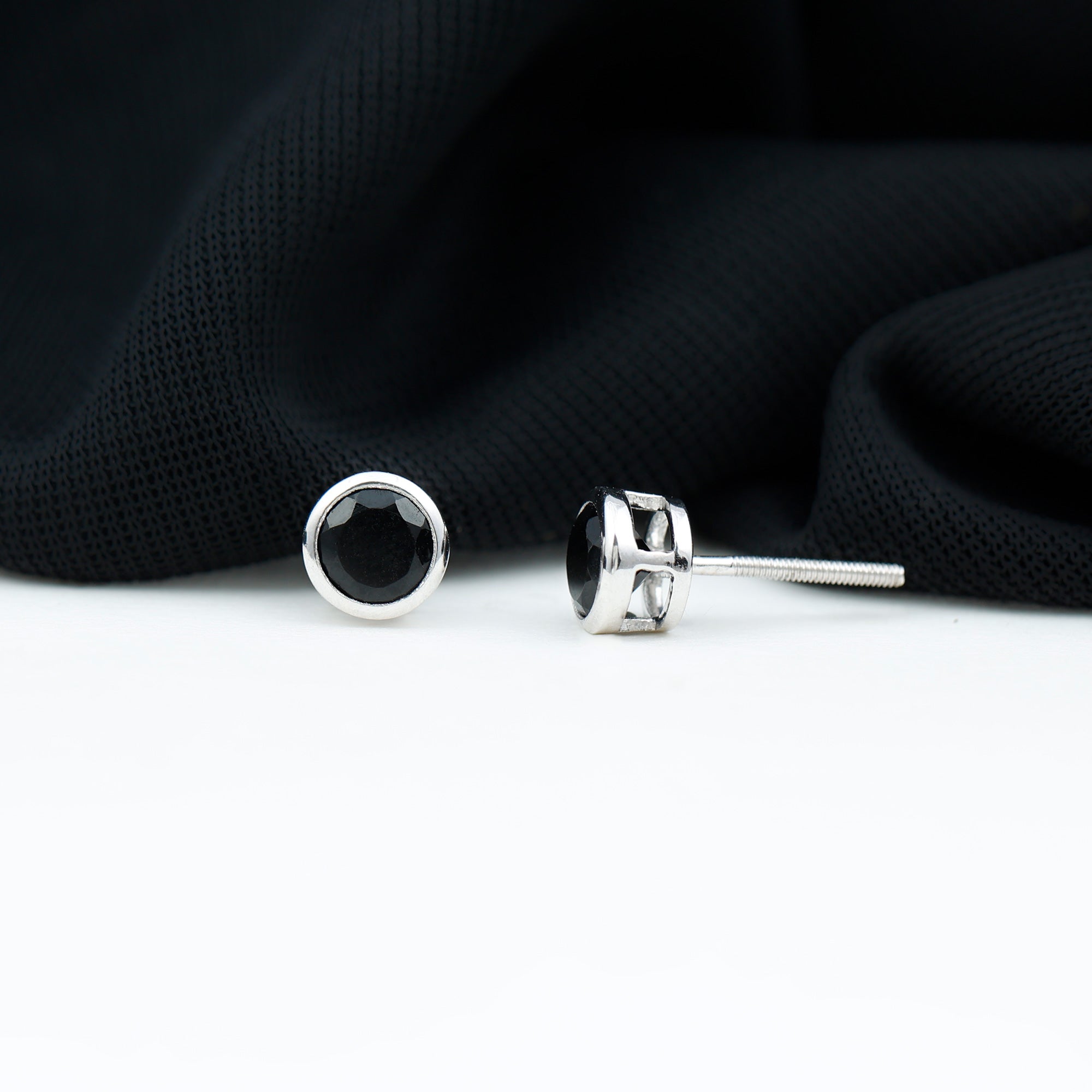 Black Onyx Solitaire Stud Earrings in Bezel Setting