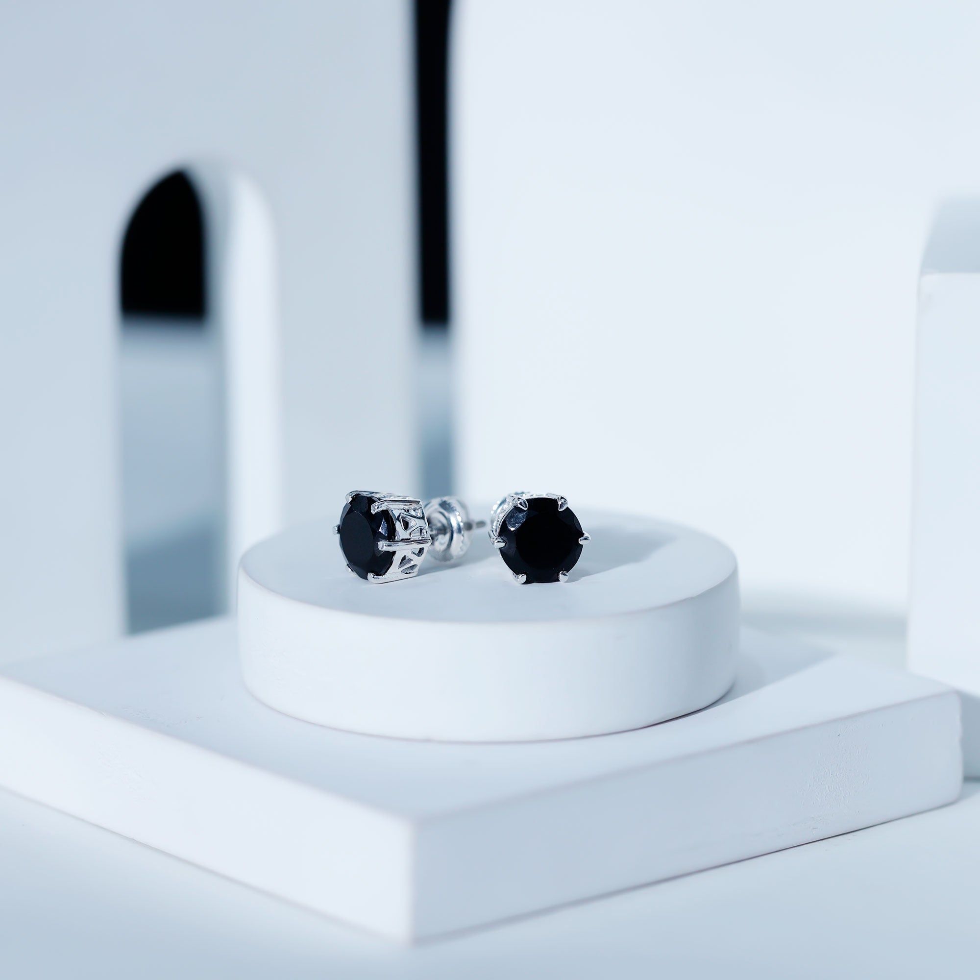 Elevate your style with these exquisite Solitaire Stud Earrings, each adorned with a round shape Black Onyx Gemstone, elegantly cradled in a secure 6 Claw Prong Setting. These earrings exude sophistication and individuality, making them the perfect addition to your jewelry collection for any occasion.