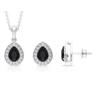 Black Onyx Teardrop jewelry Set with Moissanite Halo