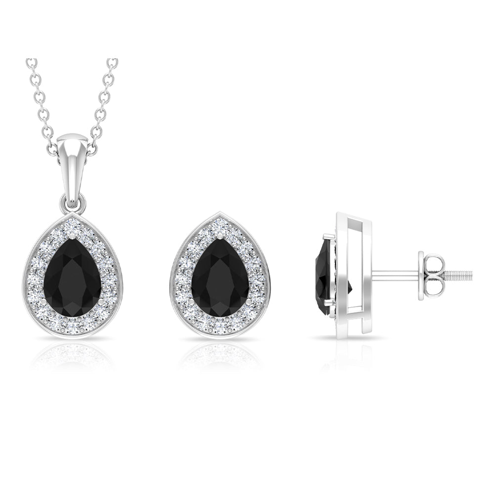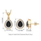 This Earring and Pendant Set takes its inspiration from Art Deco design, featuring a Pear-Shaped Black Onyx Pendant and Black Onyx Stud Earrings. The jewelry Set is embellished with a dazzling Moissanite Halo, adding a magnificent touch to the Black Onyx jewelry Set. This Party Wear jewelry Set is an essential addition to every womans collection.