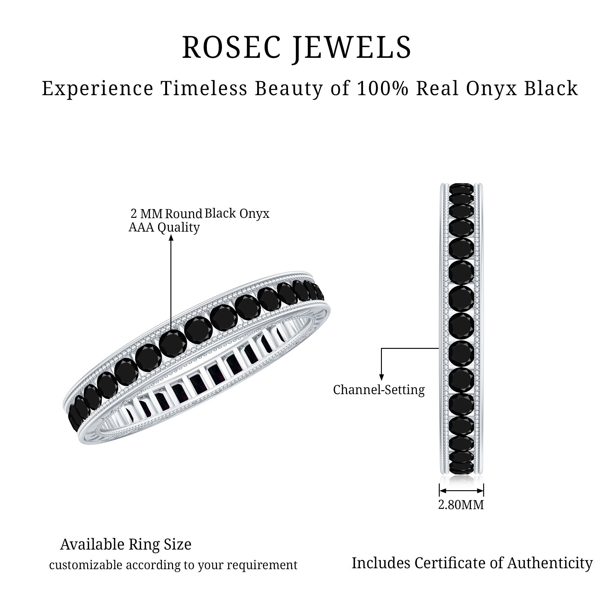 Curves and details come together in perfect harmony with this Onyx Eternity Band, creating a look that is both classic and charming. This Full Eternity Ring features round cut Black Onyx stones that circle the entire band, giving it a continuous flow of dark color. Each black onyx gem is carefully channel set to showcase its natural beauty and shine, making the Eternity Wedding Band a bold yet elegant accessory. Adding to its vintage charm, the edges of the band have delicate beaded detailing, which gives the Black Onyx Wedding Band a unique texture and an old world feel. Perfect for special moments, this Stackable Eternity Ring can be worn alone to make a strong style statement or paired with other rings to create a stacked look. It is a beautiful choice for anniversaries, celebrations, or just to add a touch of timeless elegance to your everyday outfit. Made with AAA quality Black Onyx, the ring is designed to last and maintain its stunning appearance for years to come. Whether you are treating yourself or searching for a thoughtful gift, this Black Onyx Anniversary Band brings a blend of sophistication and classic beauty to any jewelry collection. Its vintage inspired design and careful craftsmanship make it a truly special accessory for anyone who loves jewelry with character and charm.