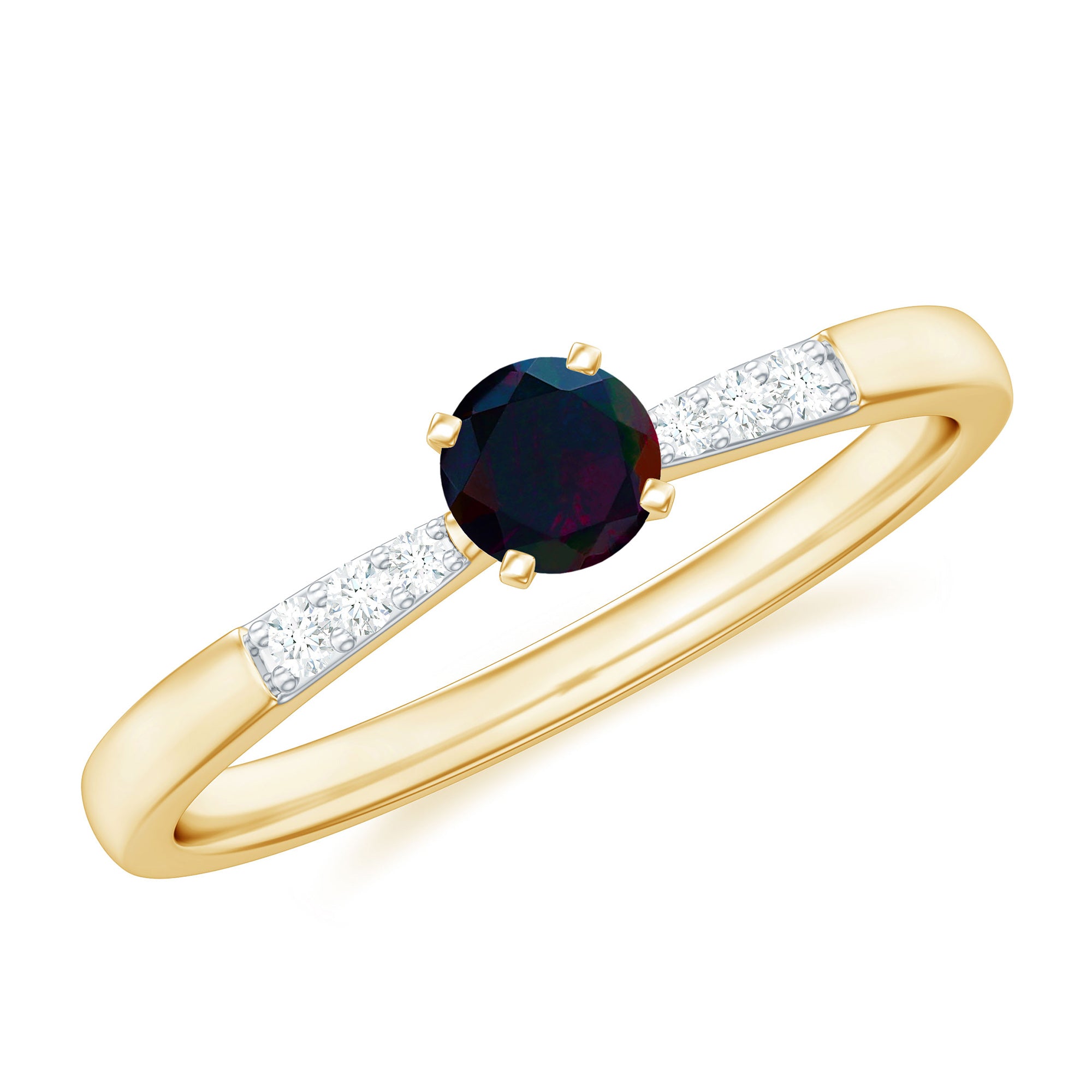 Love is a pure and sacred emotion, much like the beauty of this stunning Black Opal Ring. The Minimal Promise Ring boasts a solitaire round-cut Black Opal at the center, accentuated with sparkling Diamond Stones on the sides, creating a captivating design. This Black Opal and Diamond Ring is a perfect present for your beloved.