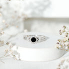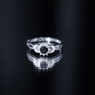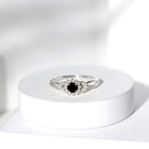 Black Spinel and Diamond Flower Engagement Ring with Split Shank