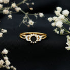 Make a bold fashion statement on your wedding day with this stunning Engagement Ring. Adorned with round-shaped black spinel and round and marquise-shaped Diamond stones in accent settings, this floral ring is the perfect choice for any bride. Crafted from solid gold with a split shank design, this ring is sure to take your breath away on your special day.