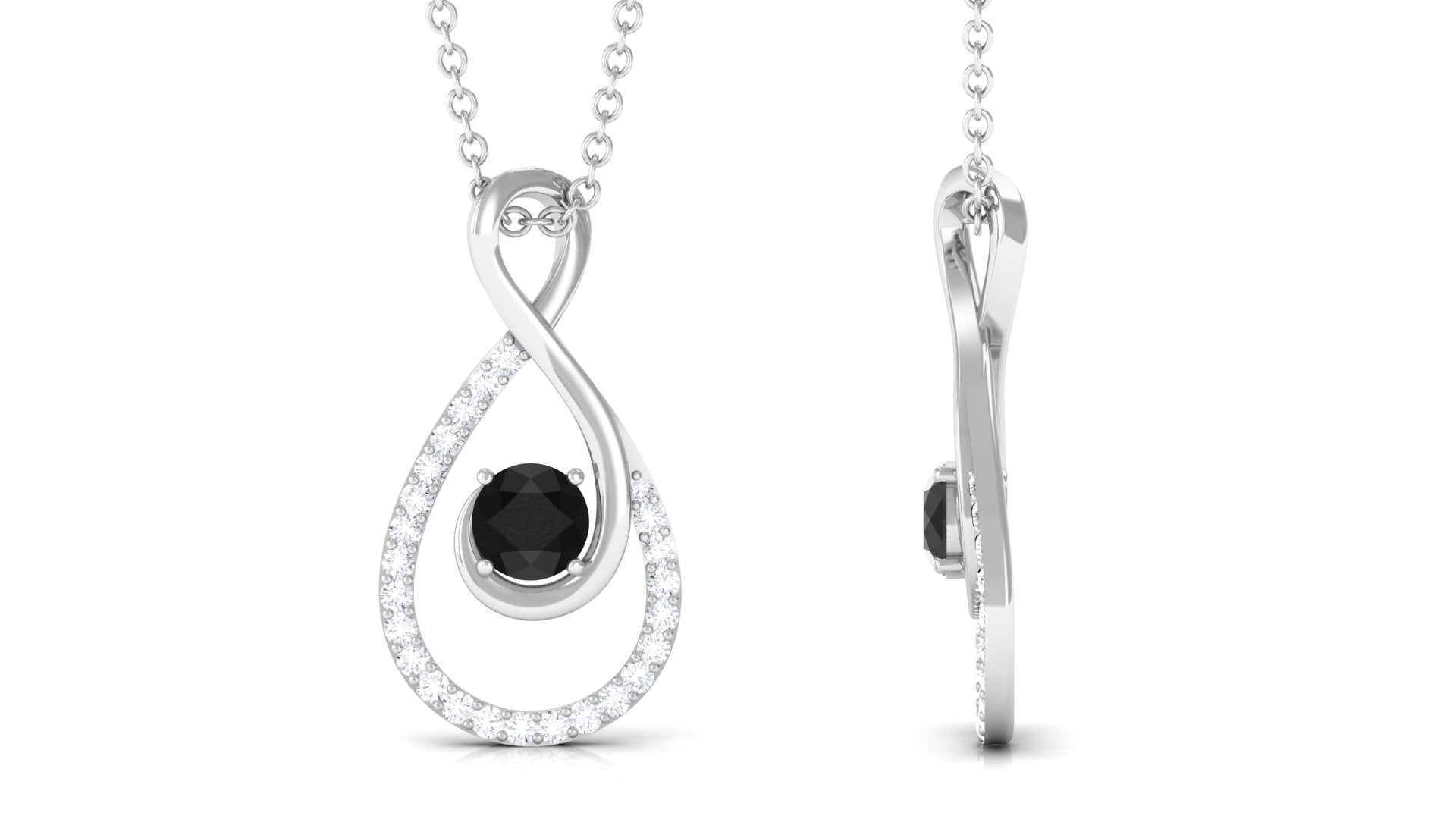Experience the captivating beauty of the Infinity Pendant Necklace, where a sparkling Solitaire Black Spinel gracefully dances at its center. Surrounding this stunning Black Spinel, brilliant Round Diamond is elegantly encased, enhancing the shimmer and elegance of the Teardrop Pendant Necklace. It serves as a perfect gift for your special person on Valentines Day or your anniversary, showcasing your love and appreciation. Embrace the allure of this gorgeous piece, and let it be a symbol of your enduring affection and timeless style.