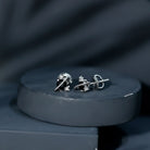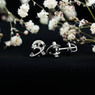 Black Spinel Celestial Stud Earrings with Diamond Stones