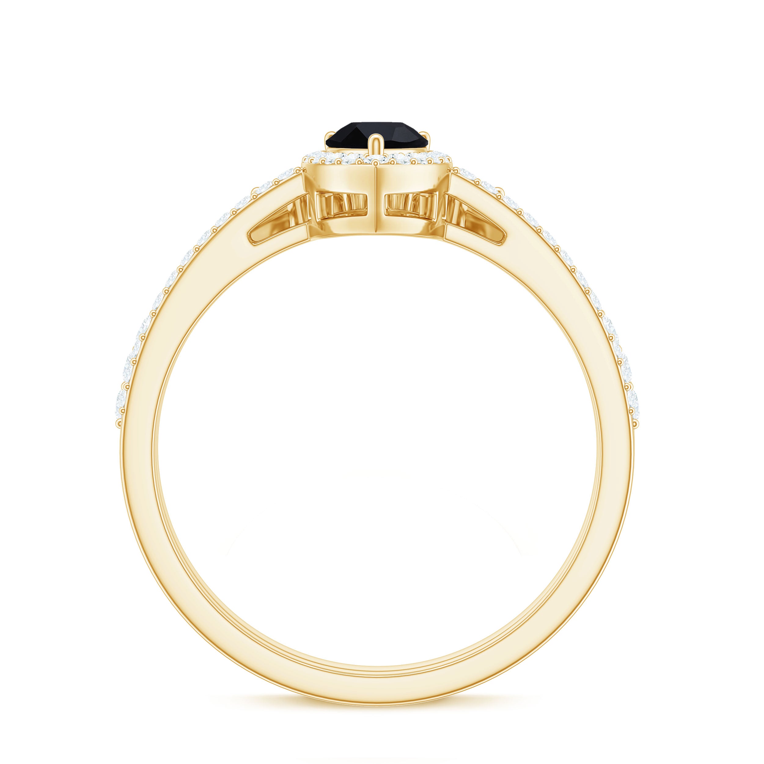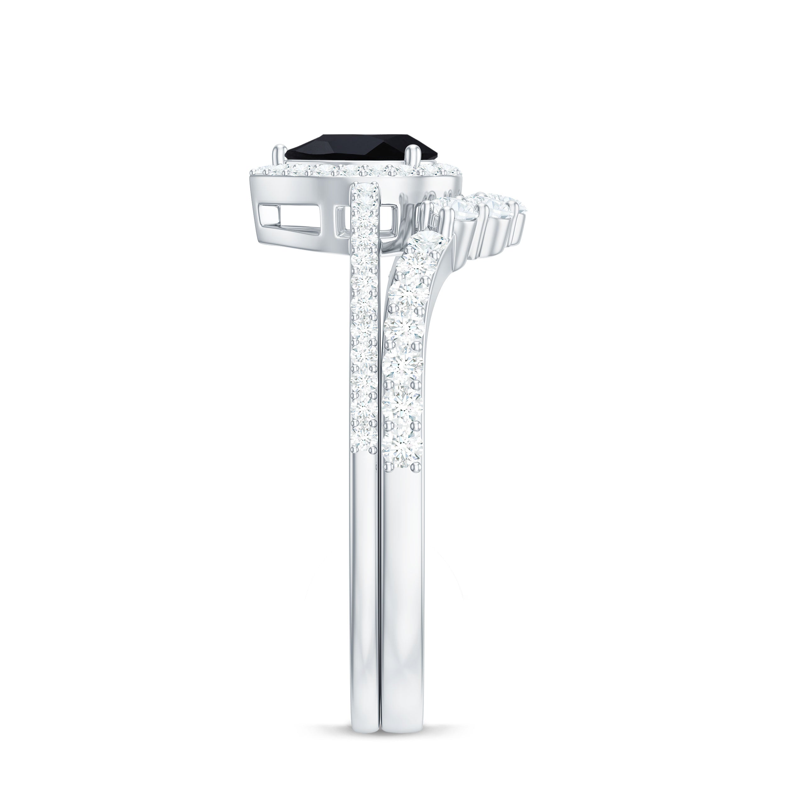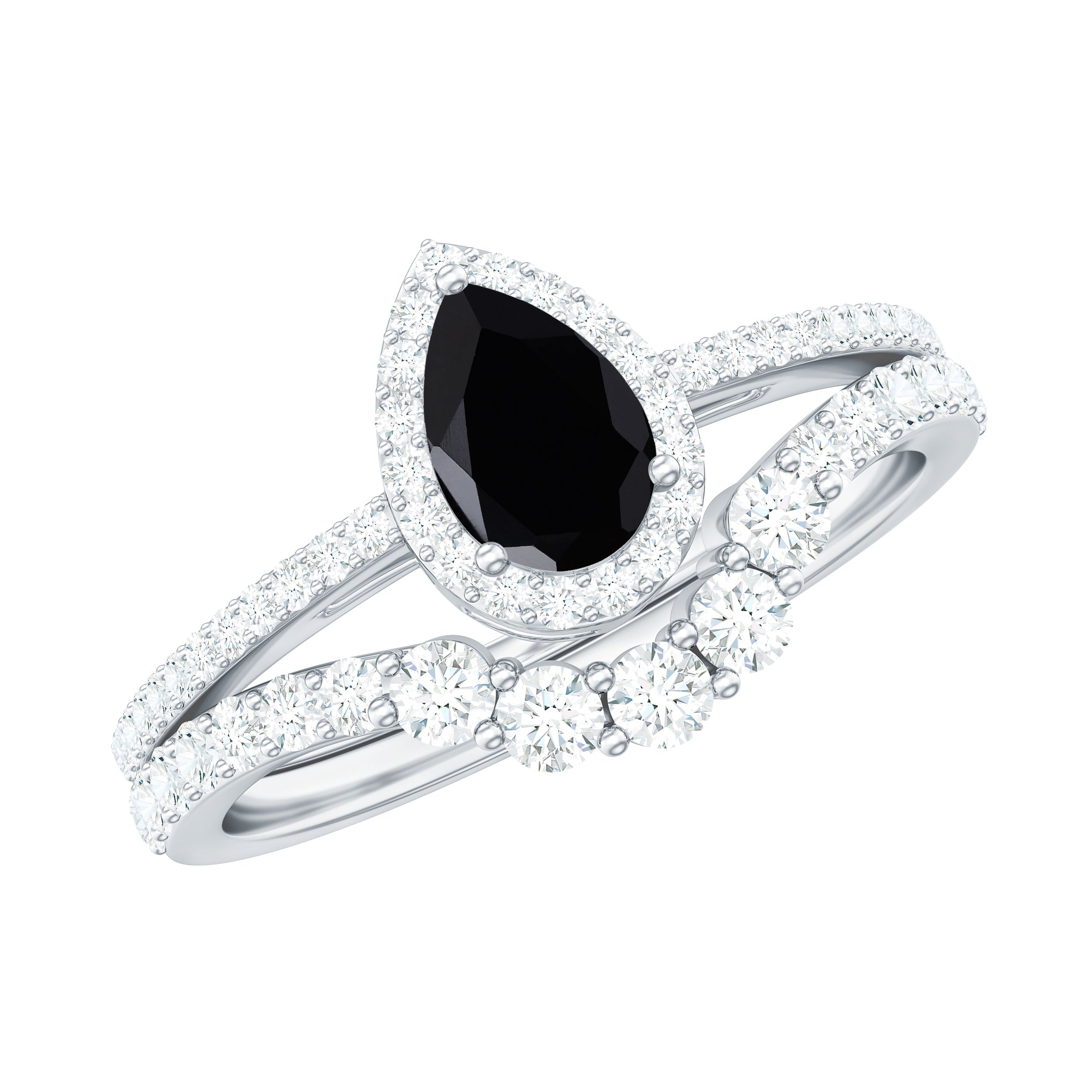Black Spinel Designer Teardrop Ring Set with Moissanite Halo