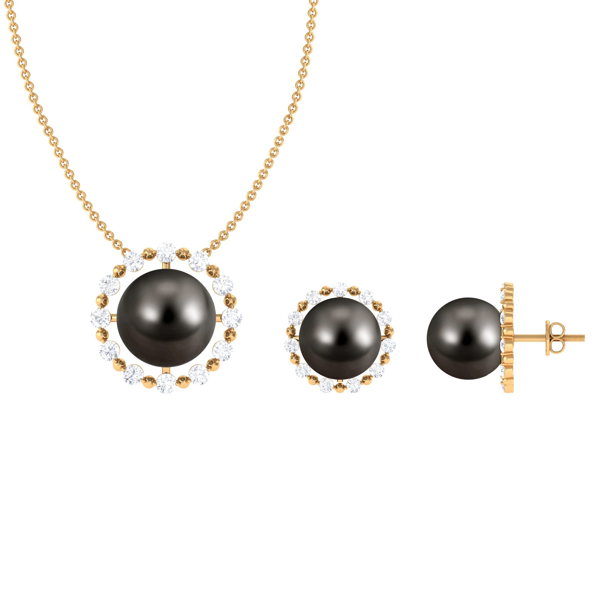 Black Tahitian Pearl and Moissanite Jewelry Set