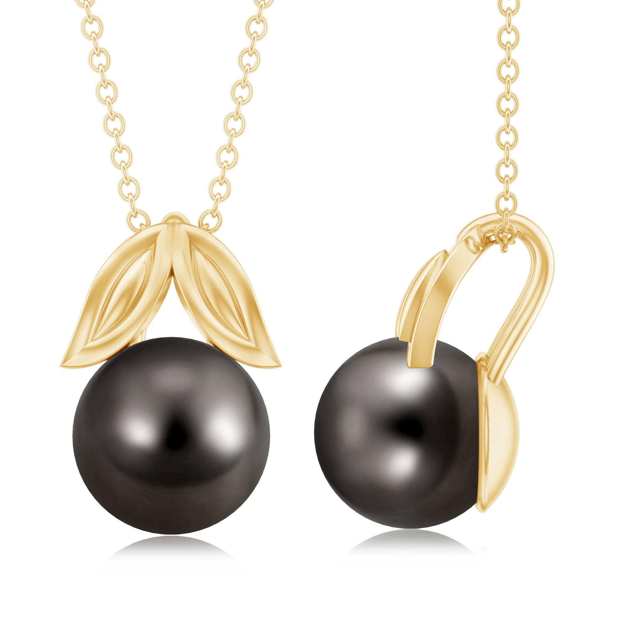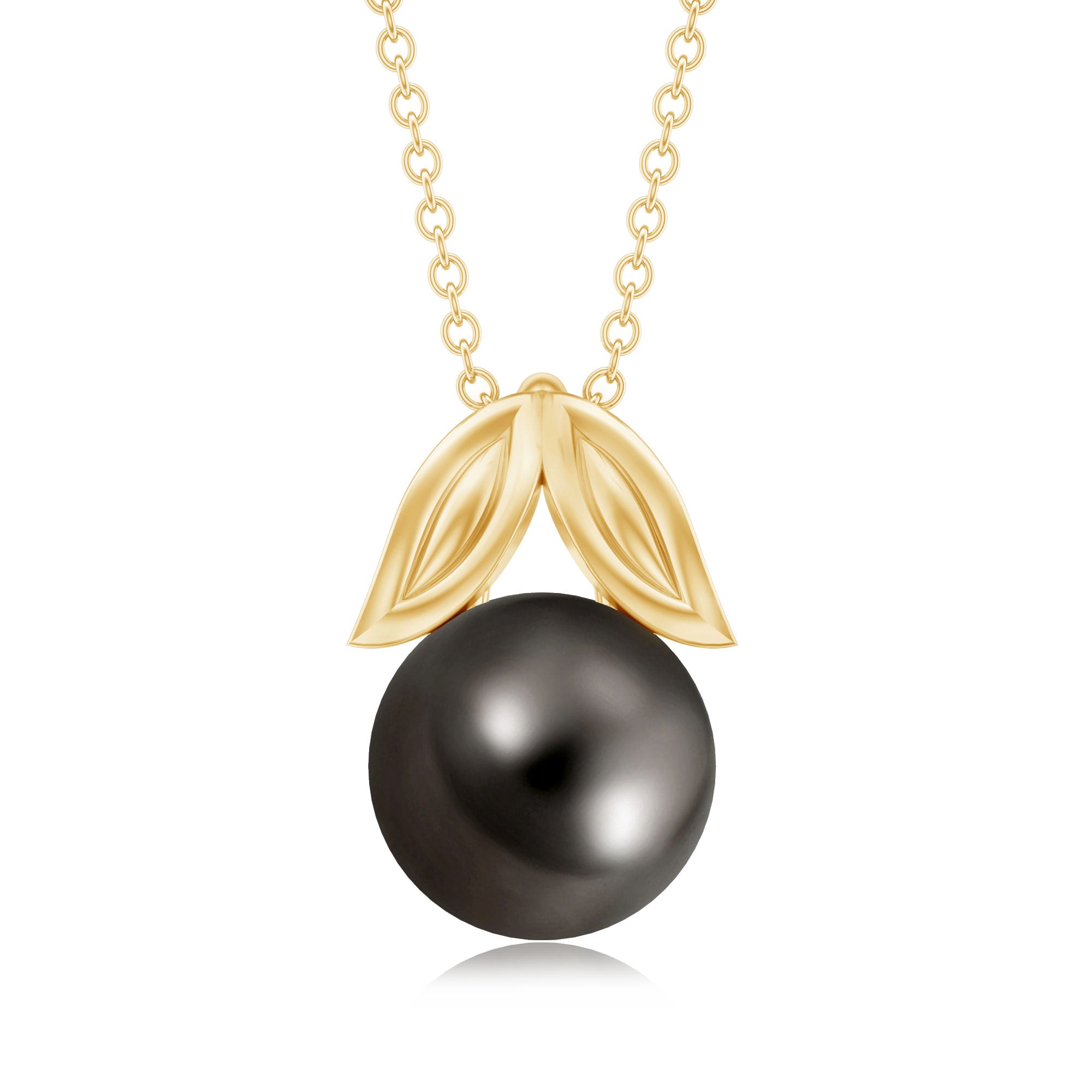 Black Tahitian Pearl Solitaire Pendant with Gold Leaf