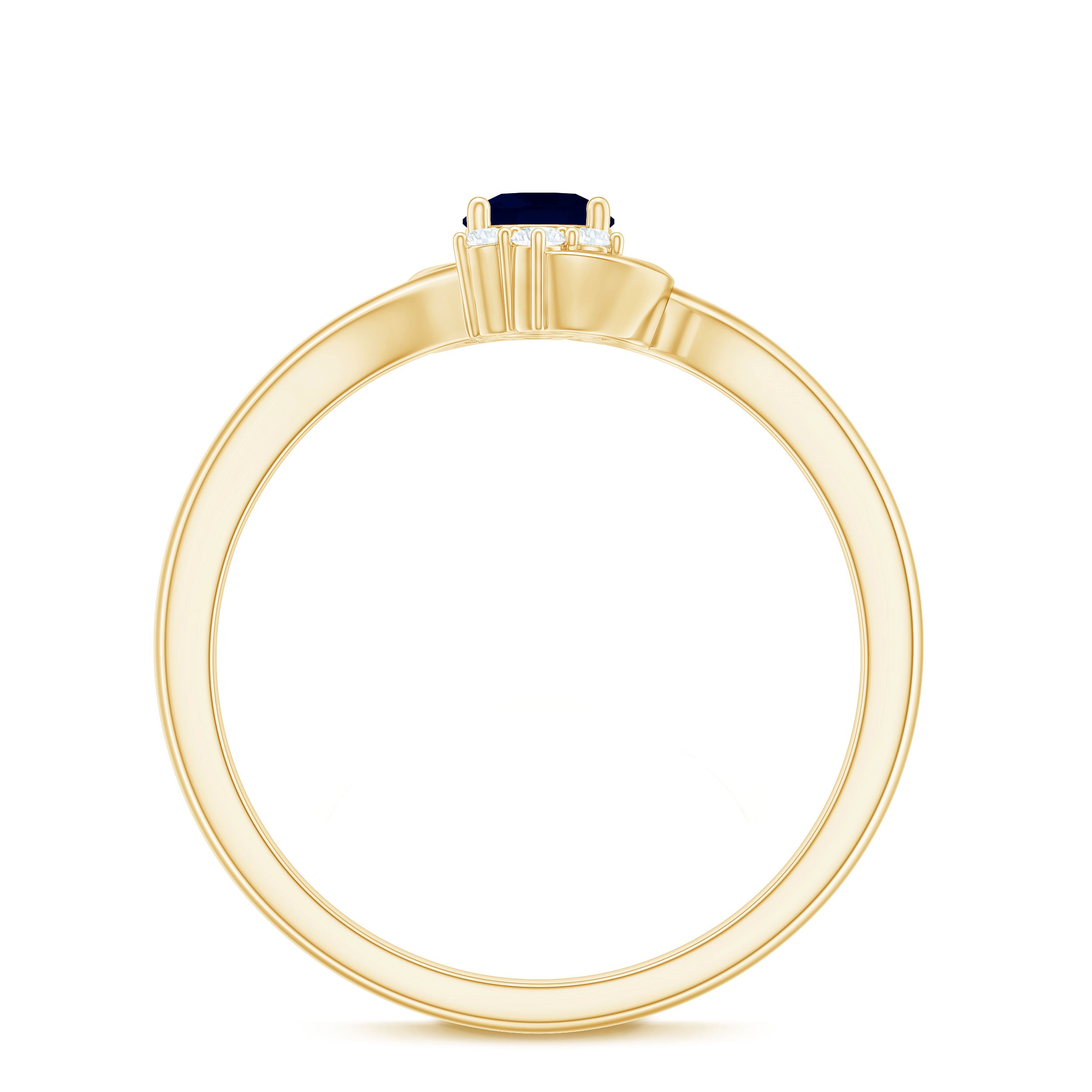 When youre ready to make a statement at the party, consider our captivating Blue Sapphire Promise Ring. This Bypass Ring features a Round Blue Sapphire gem in a secure prong setting, complemented by a trio of diamonds on both the upper and lower sides of the central gemstone. The unique Bypass Shank design adds a fashionable touch that will elevate your style to new heights.