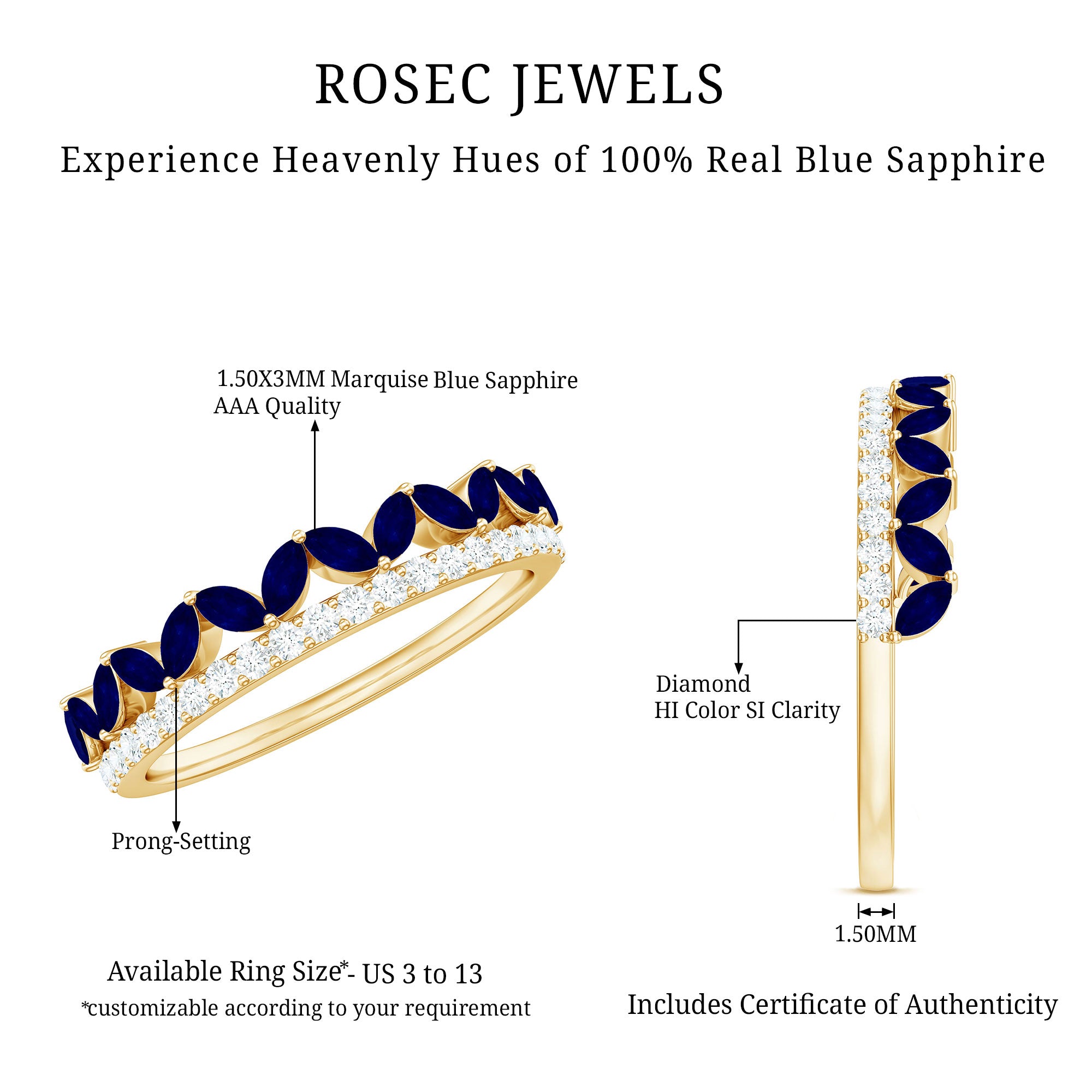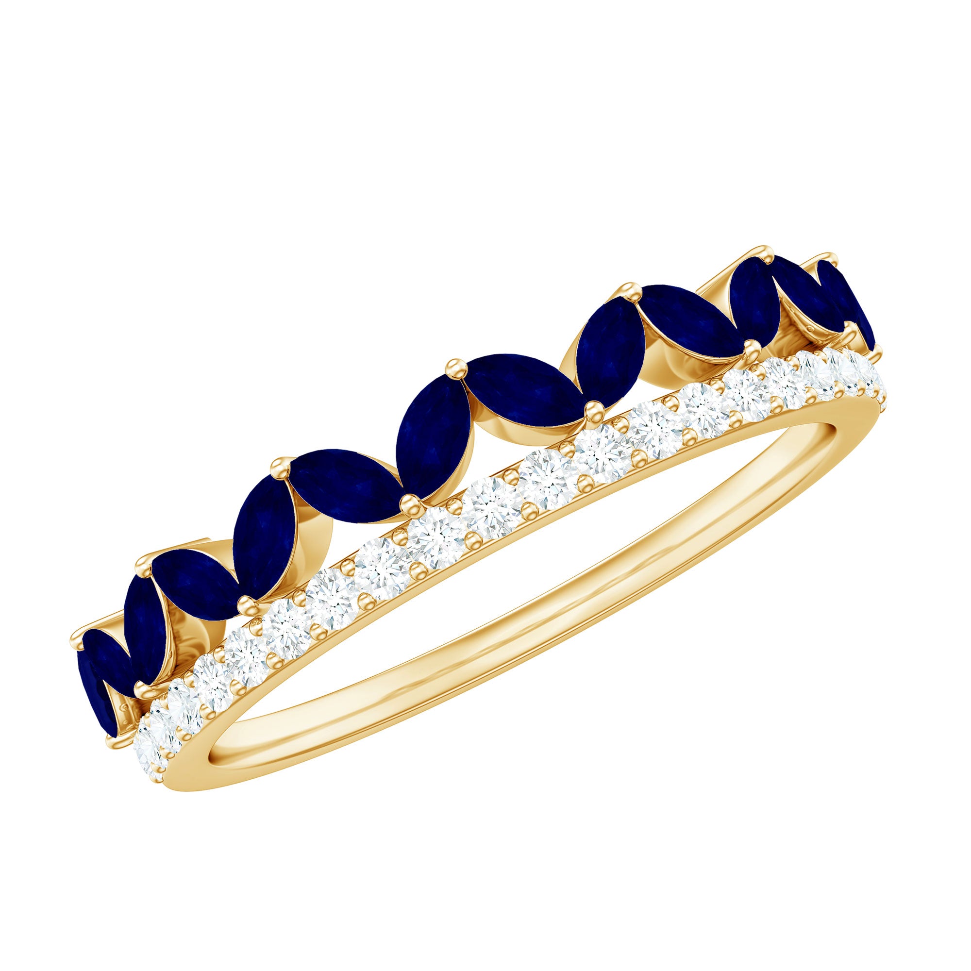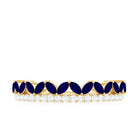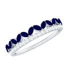 Let her feel like a queen with this Blue Sapphire Ring. The Marquise Cut Blue Sapphire in Prong Setting with Diamond on Half Eternity Ring.