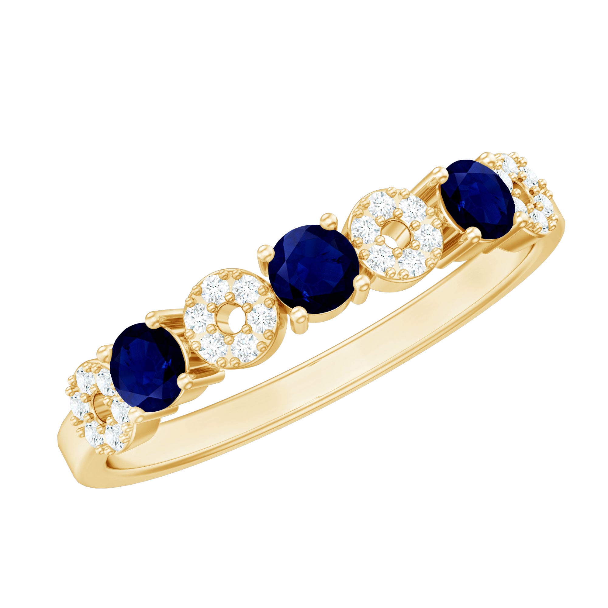This Half Eternity Band Ring is a special jewelry to make her feel special, adorned with Round Shape Blue Sapphire in Prong Setting and Diamond.